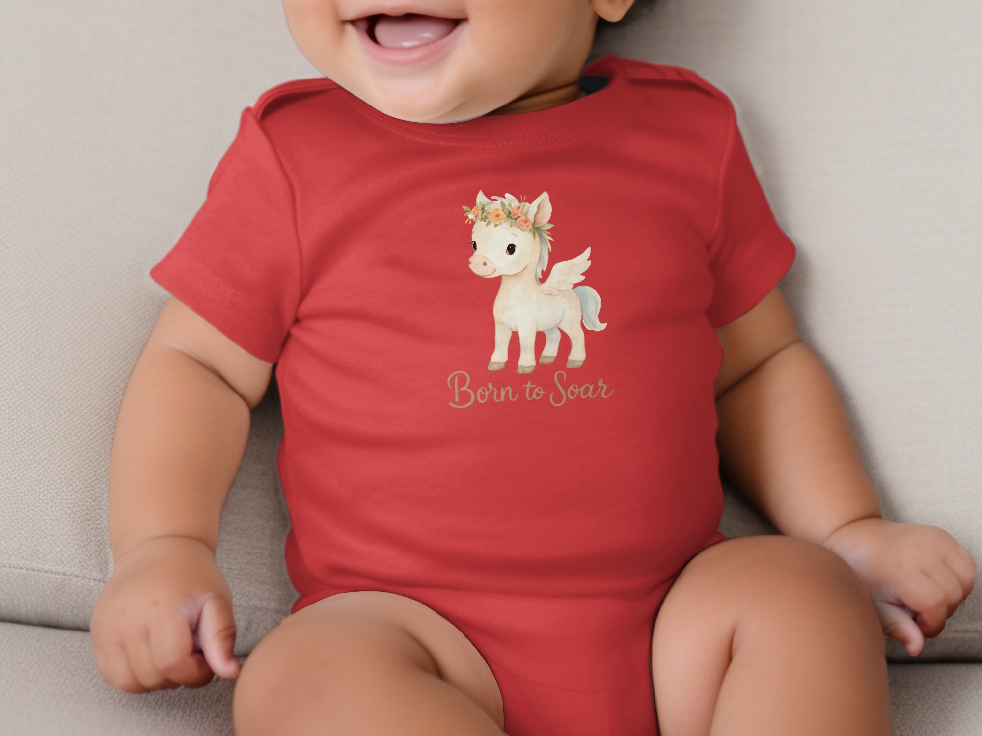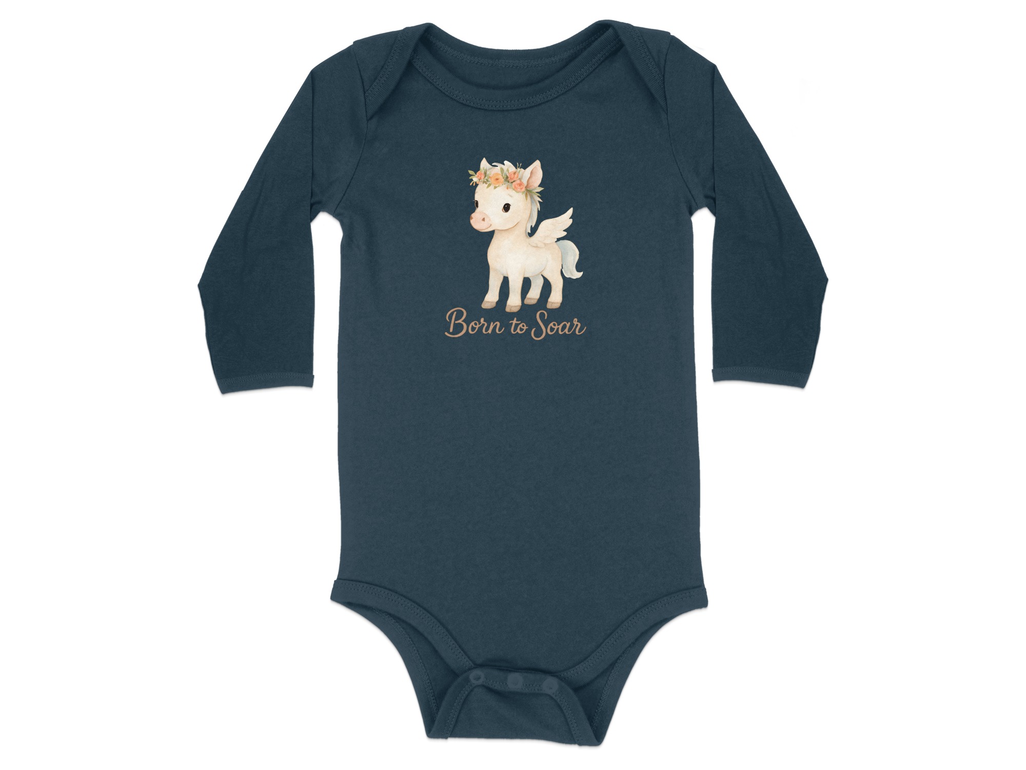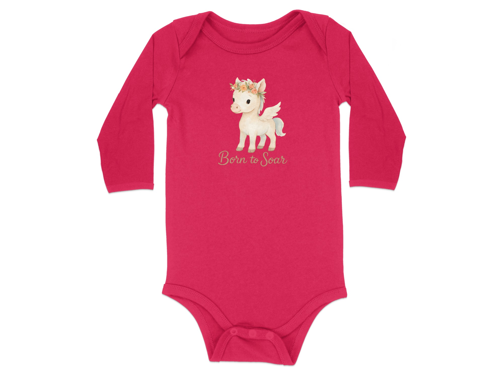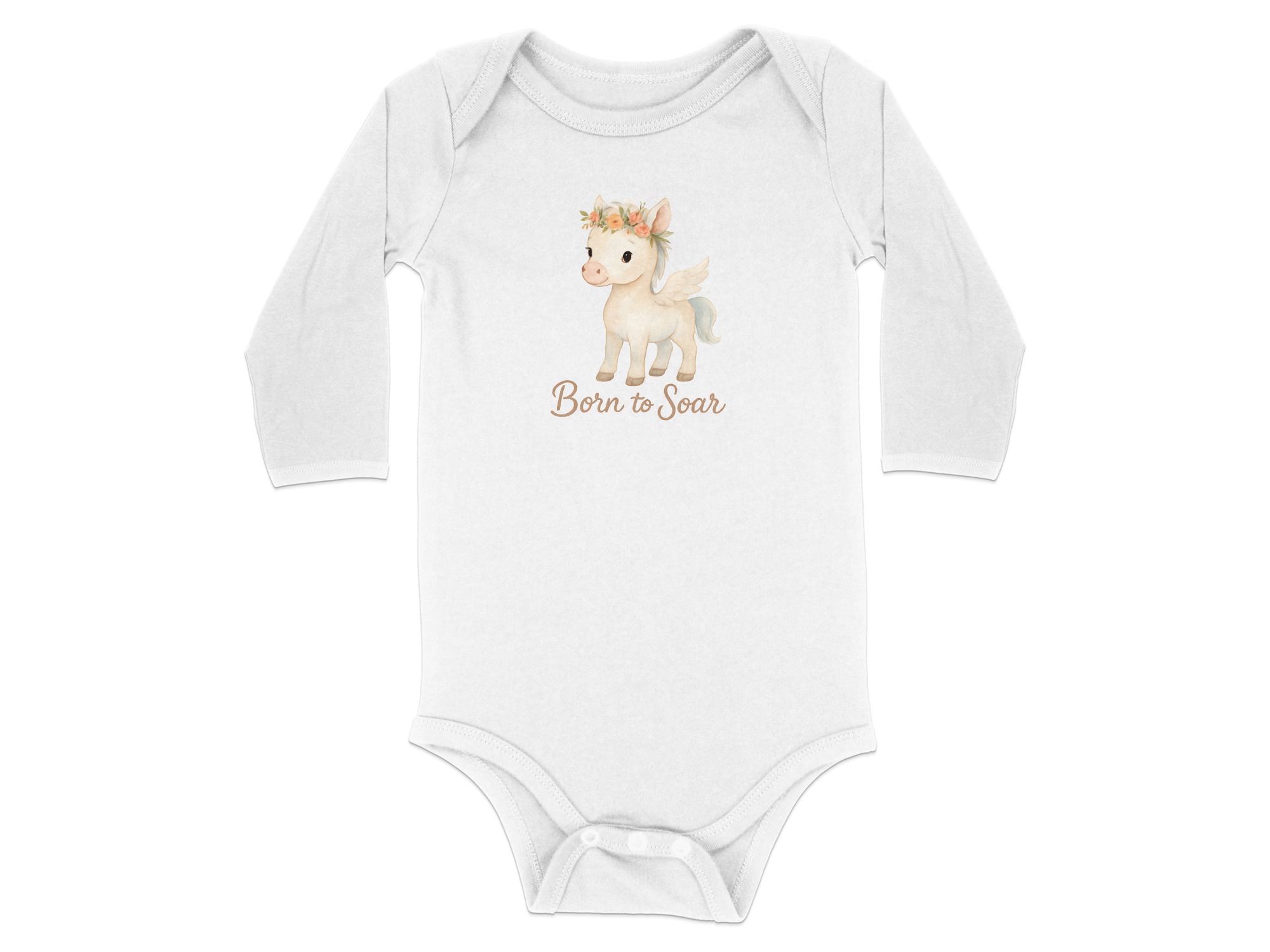 Born to Soar Cute Unicorn Pegasus Kids Newborn Baby Short and Long Sleeve Body Suit NB to 24M