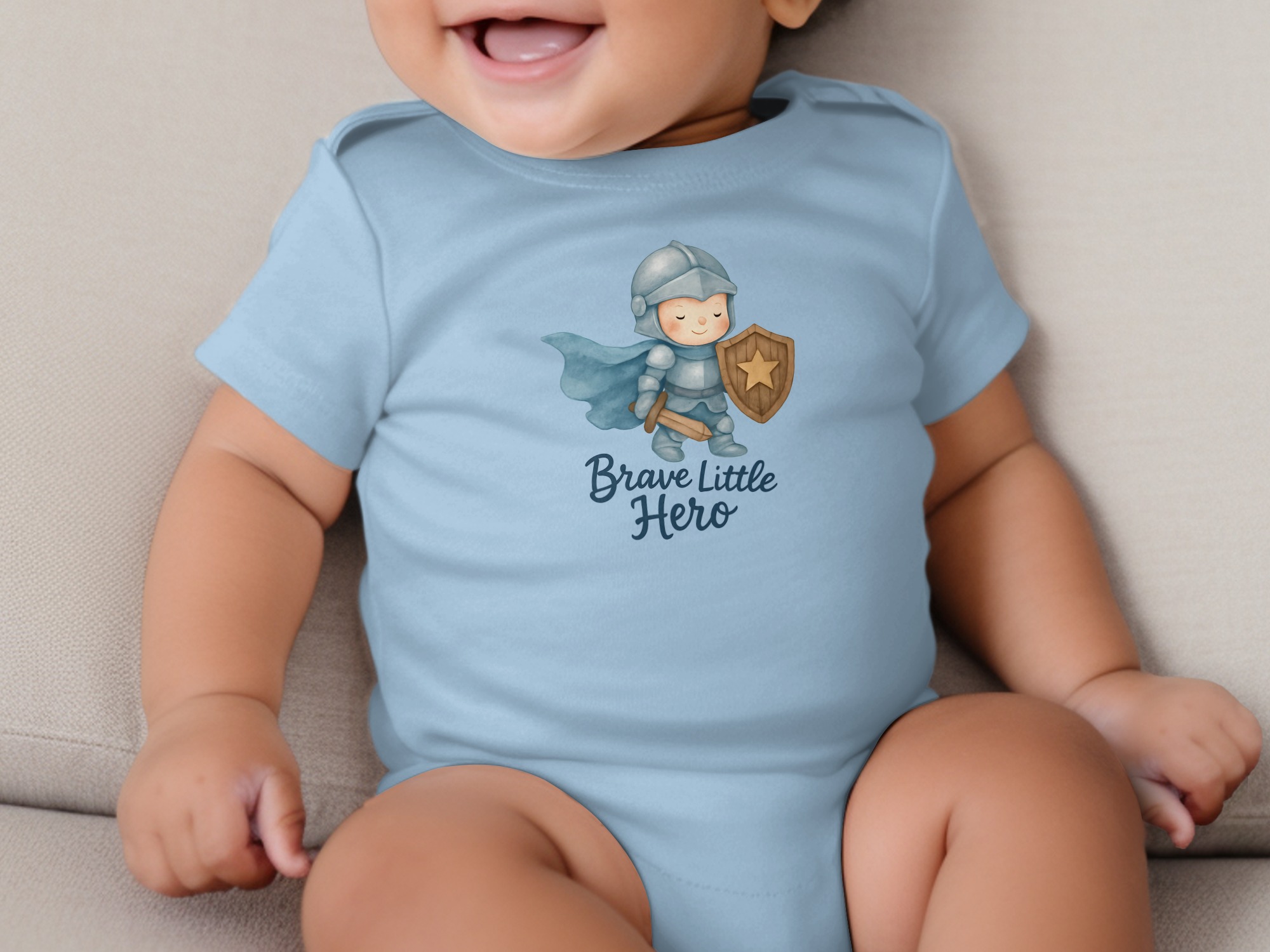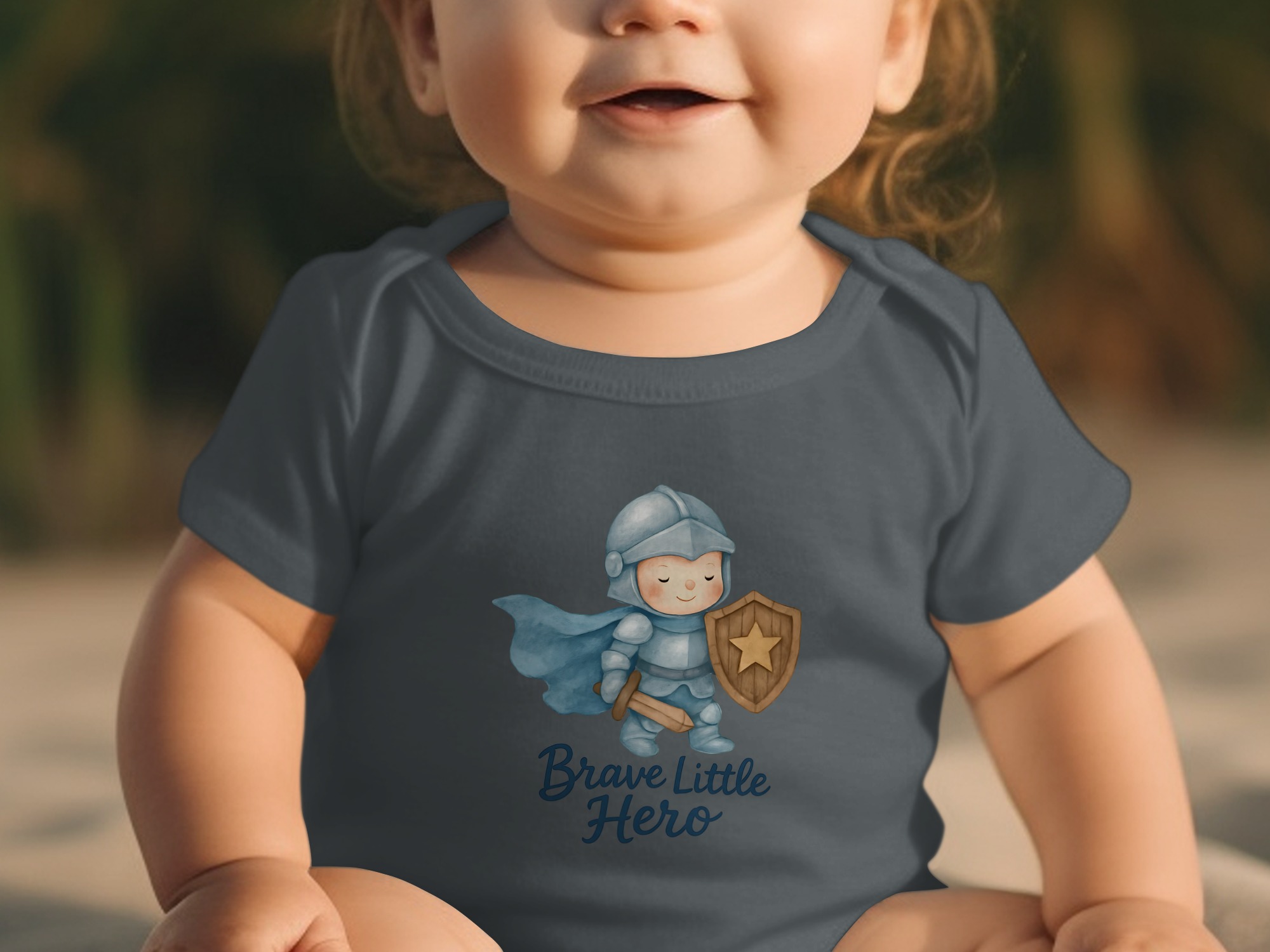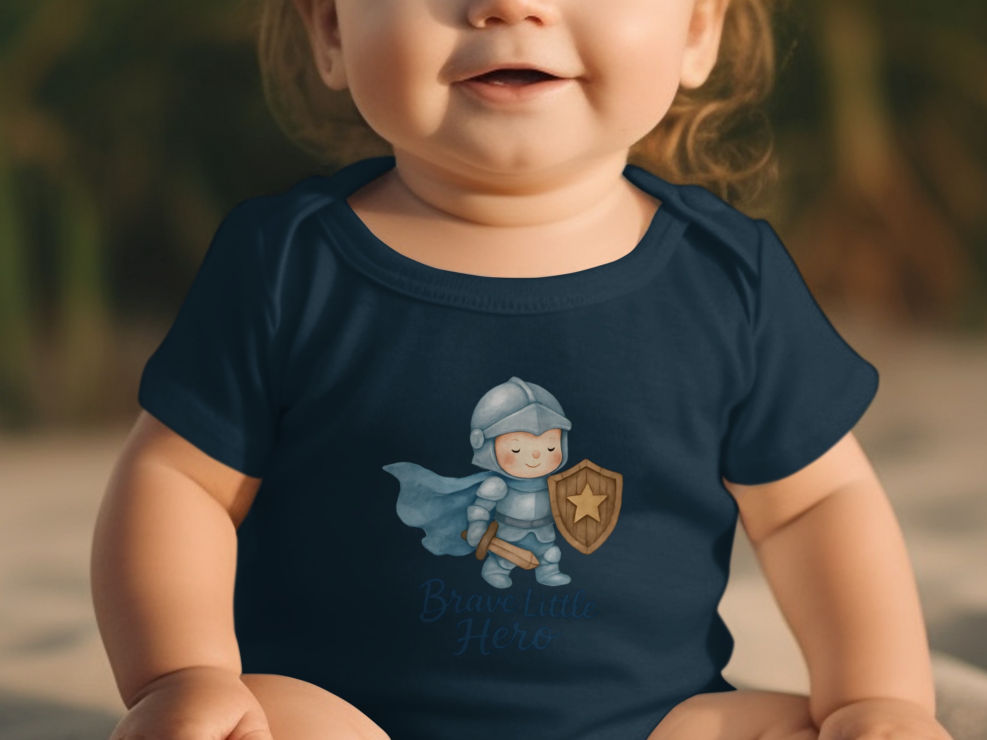 This adorable baby bodysuit features a brave little hero in shining armor, ready for adventures! Perfect for your little knight in training. Shop now!