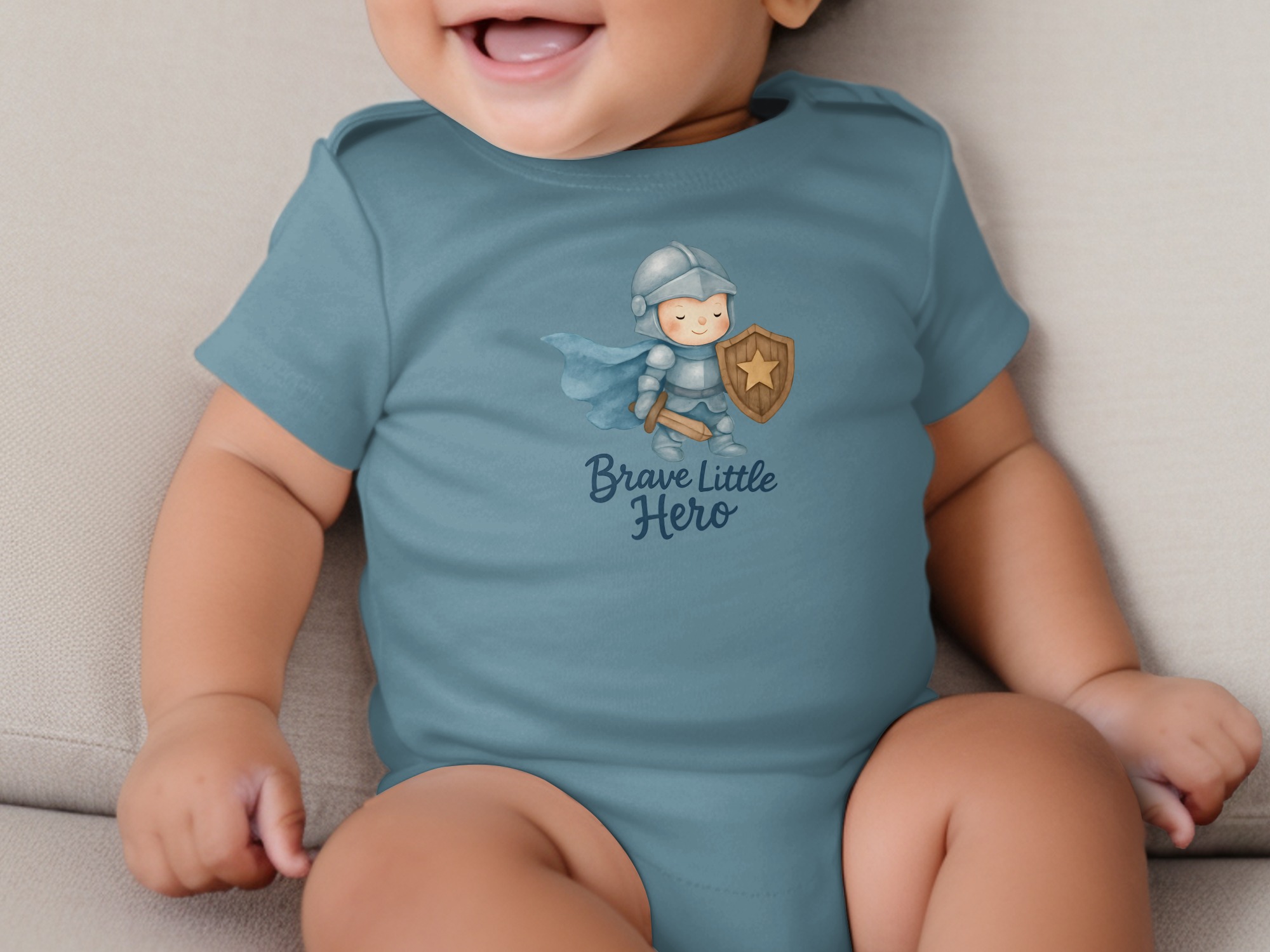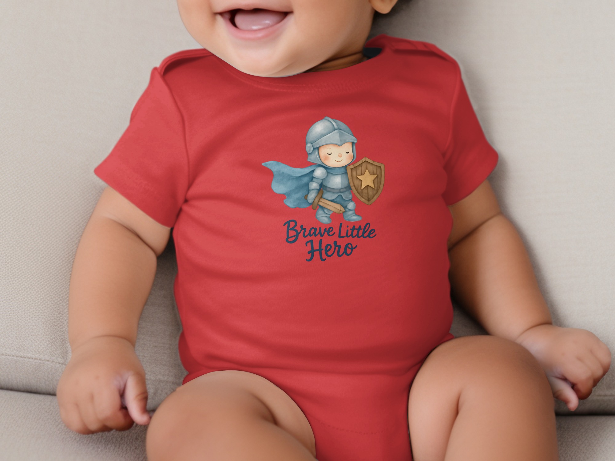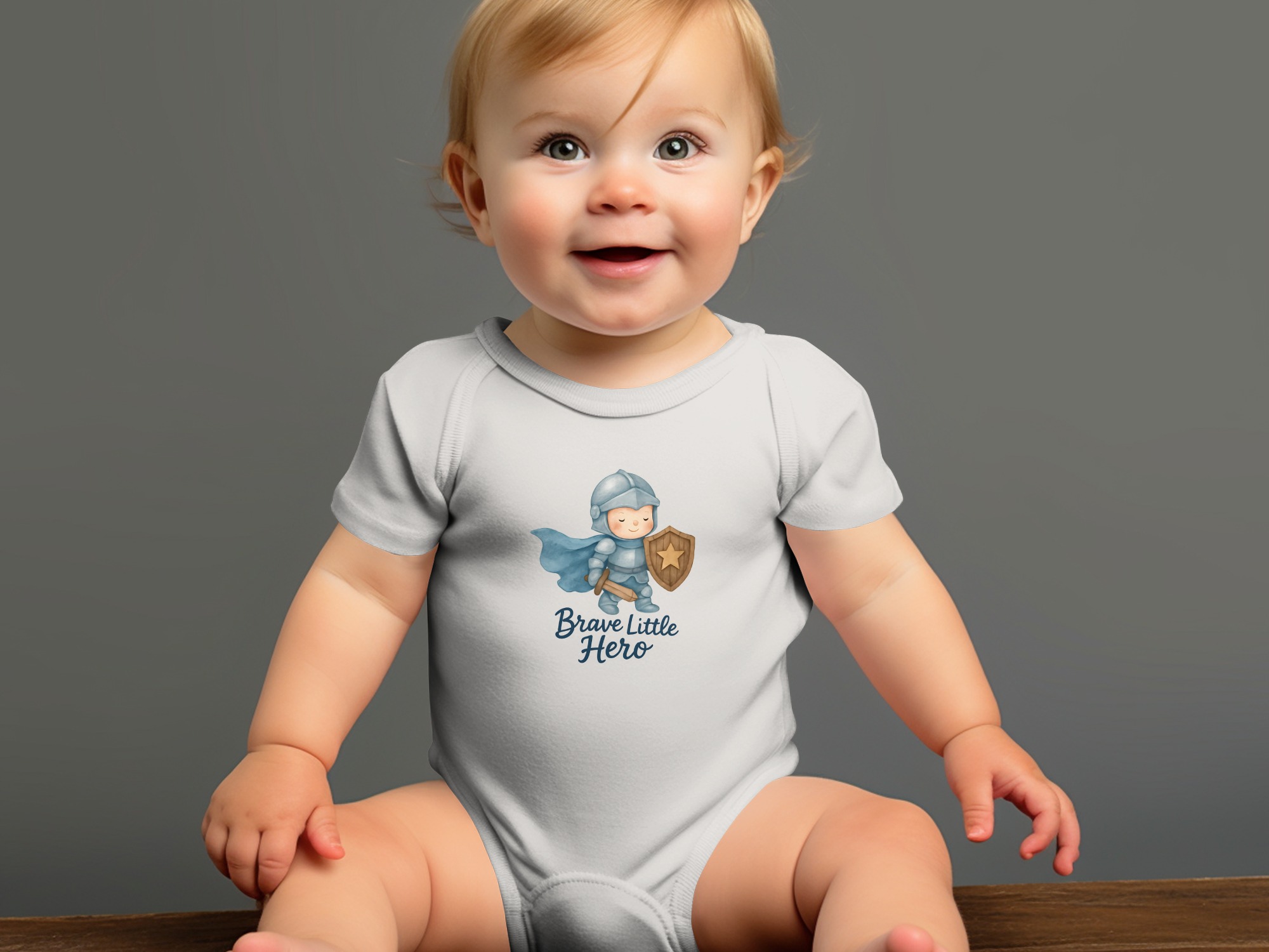 This adorable baby bodysuit features a brave little hero in shining armor, ready for adventures! Perfect for your little knight in training. Shop now!