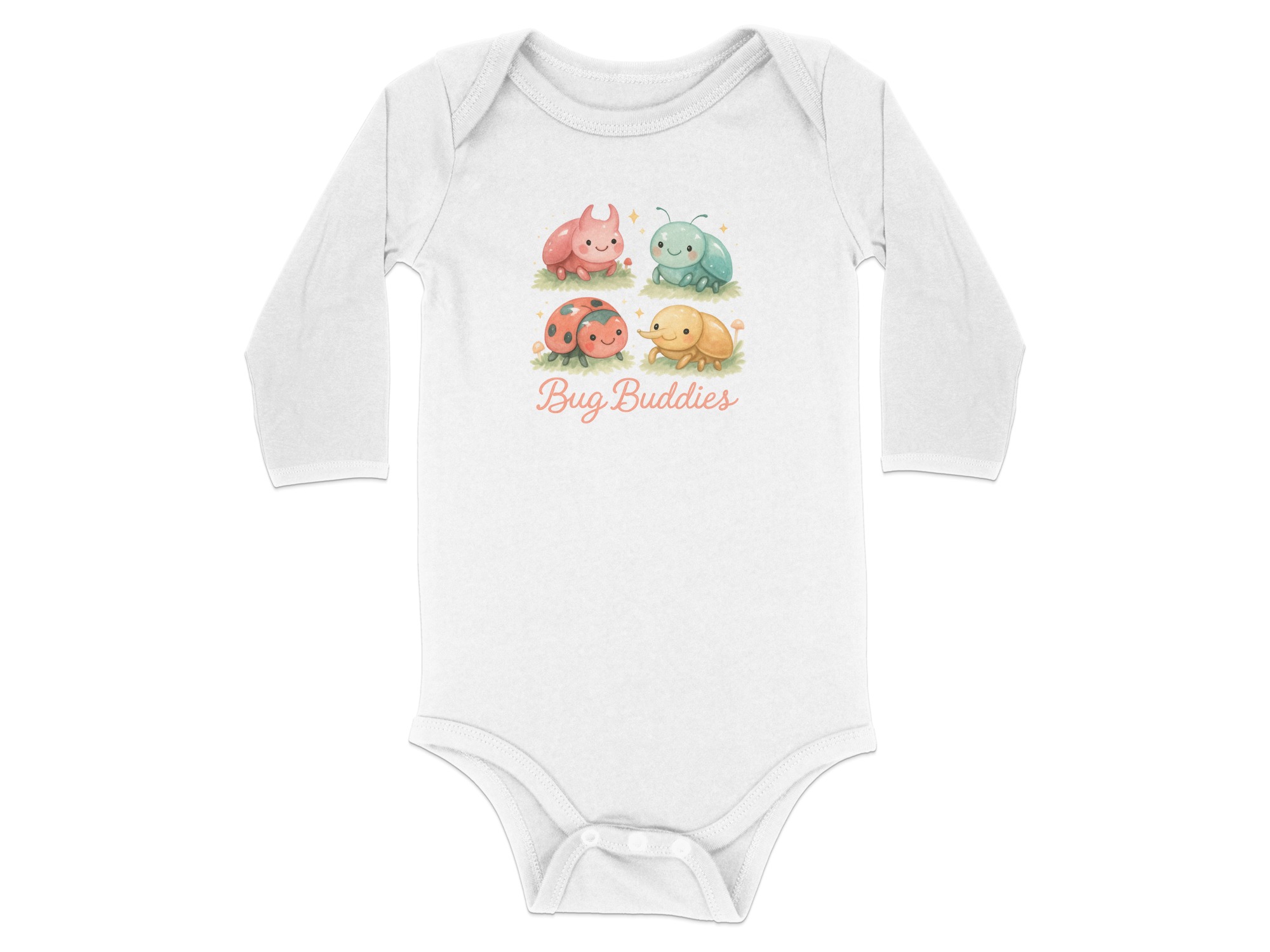 Dress your little one in this adorable “Bug Buddies” bodysuit featuring a collection of cute, watercolor style insects. This bodysuit is available in newborn to 24 months sizing and is perfect for baby showers, birthdays, or just because!