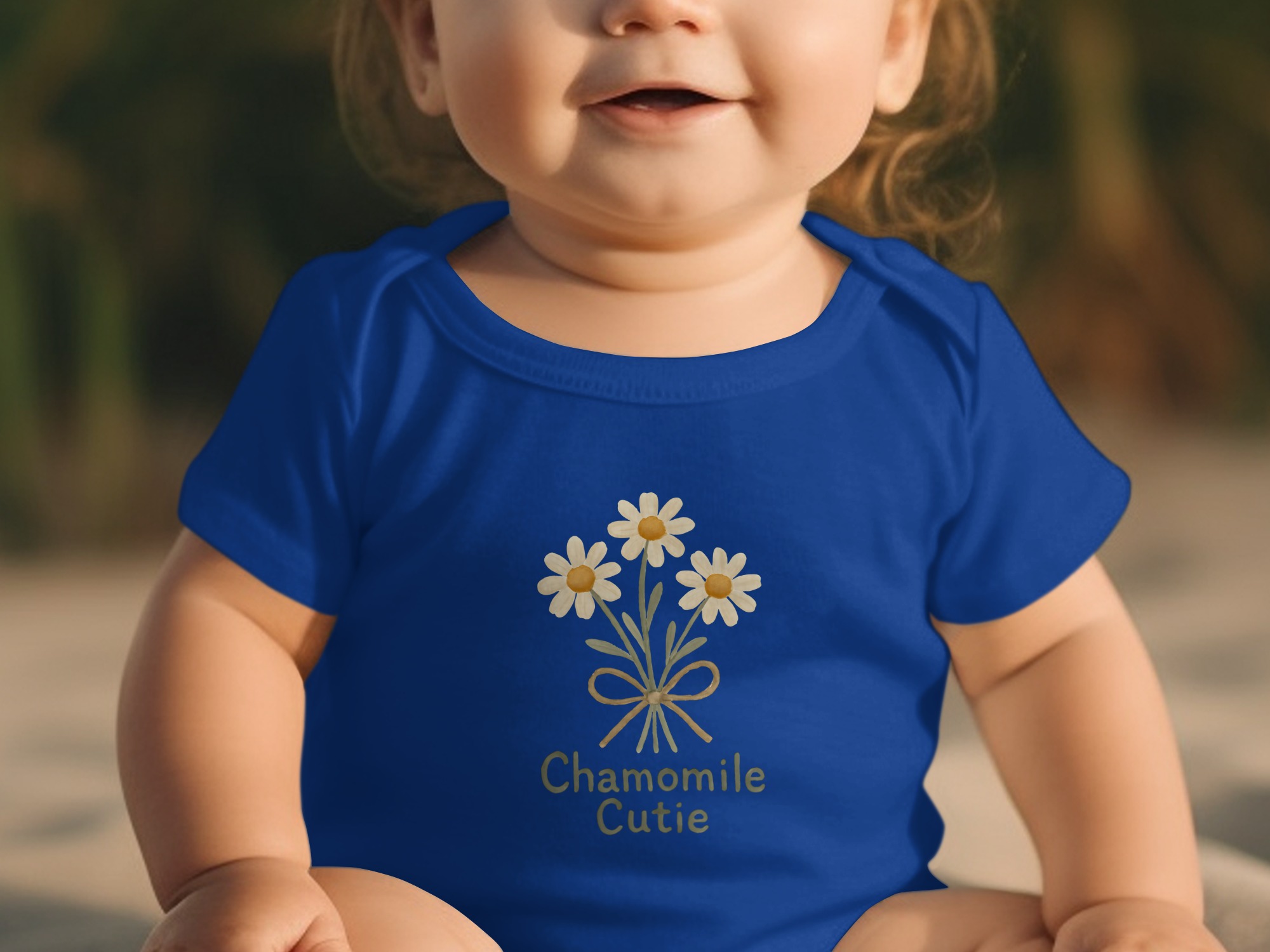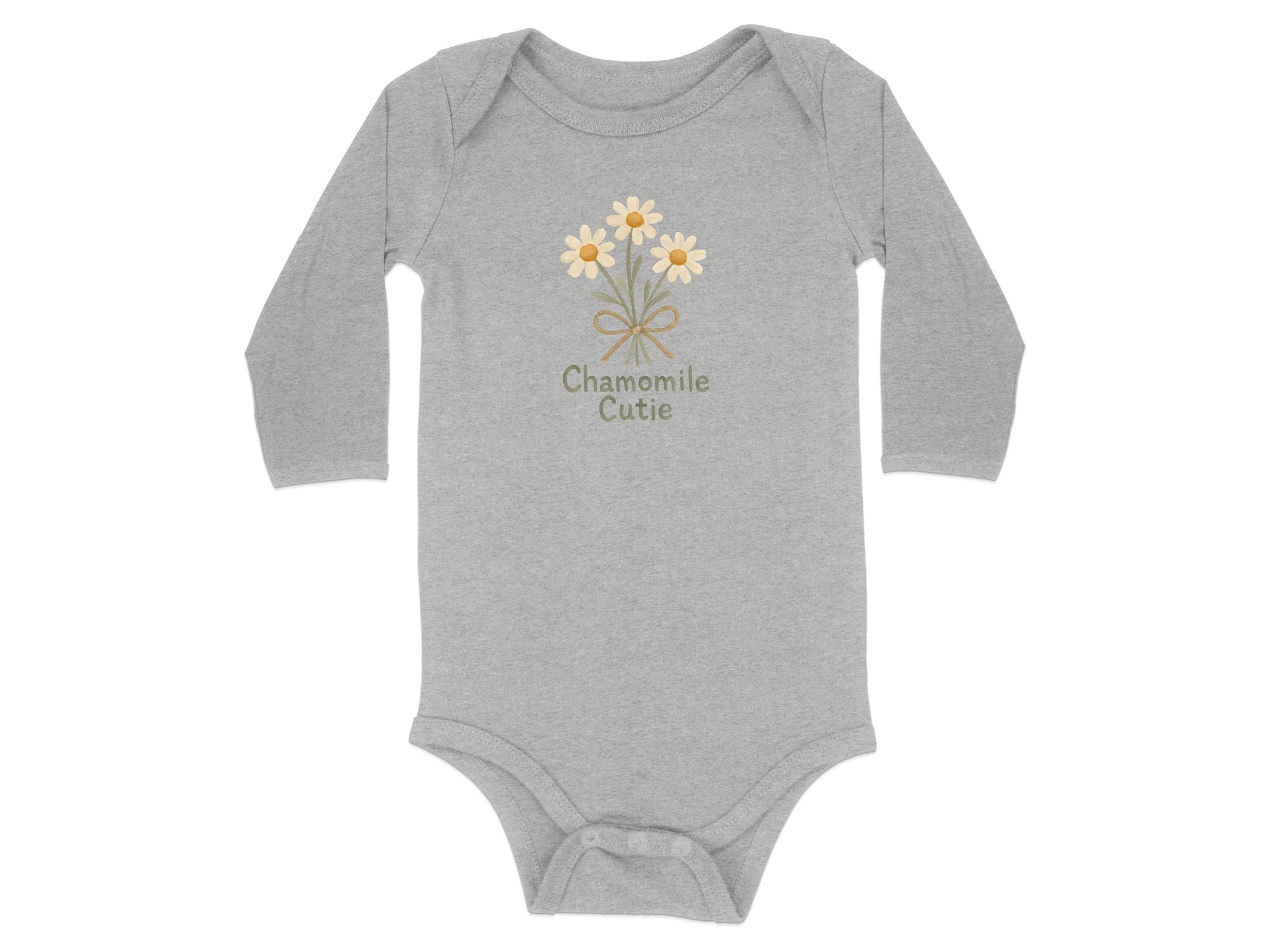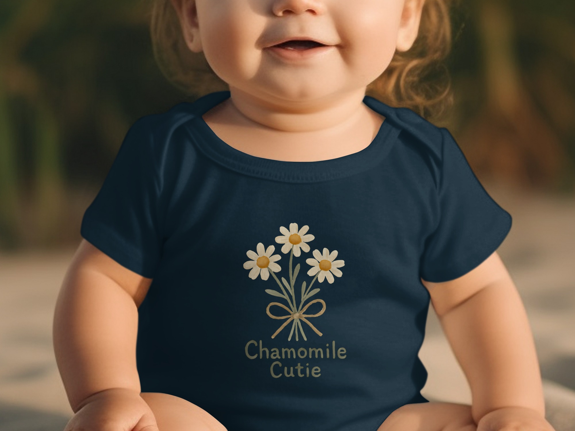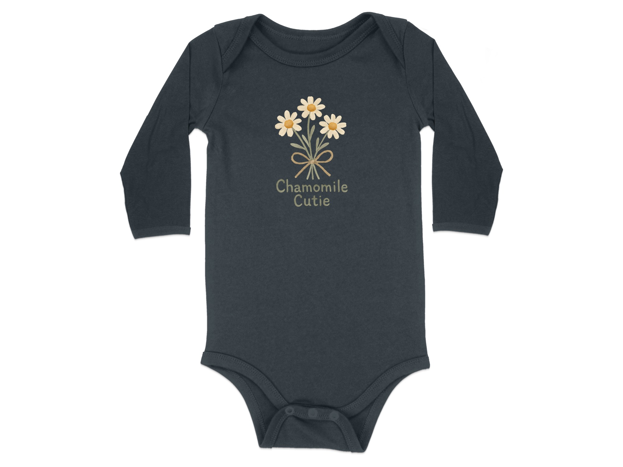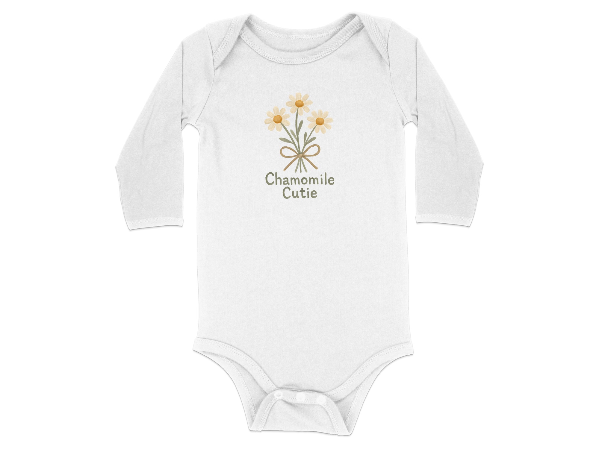 Chamomile “Cutie” baby bodysuit for the sweetest little one! Soft, breathable cotton & an adorable floral design. Make your baby the cutest kid around!