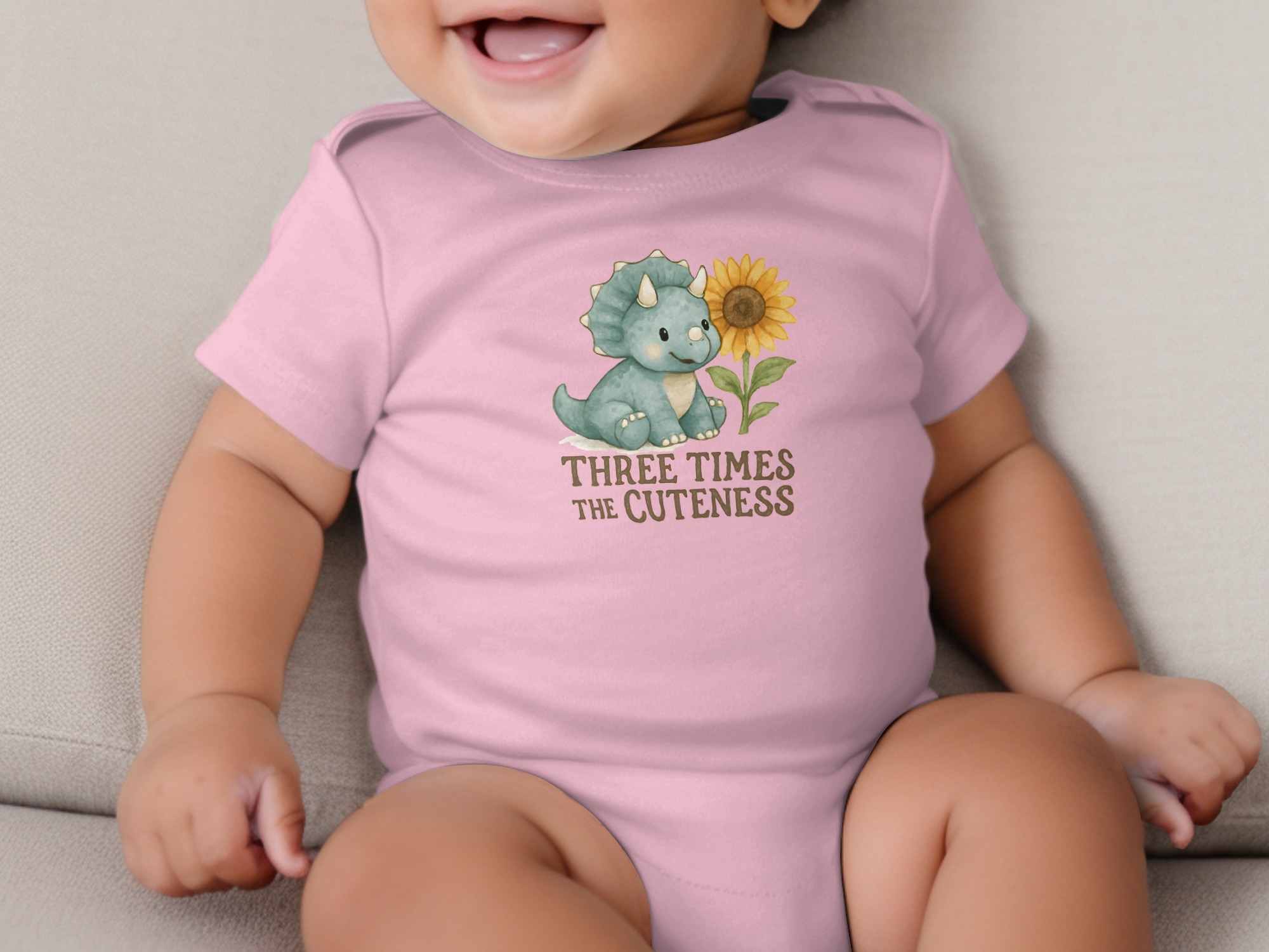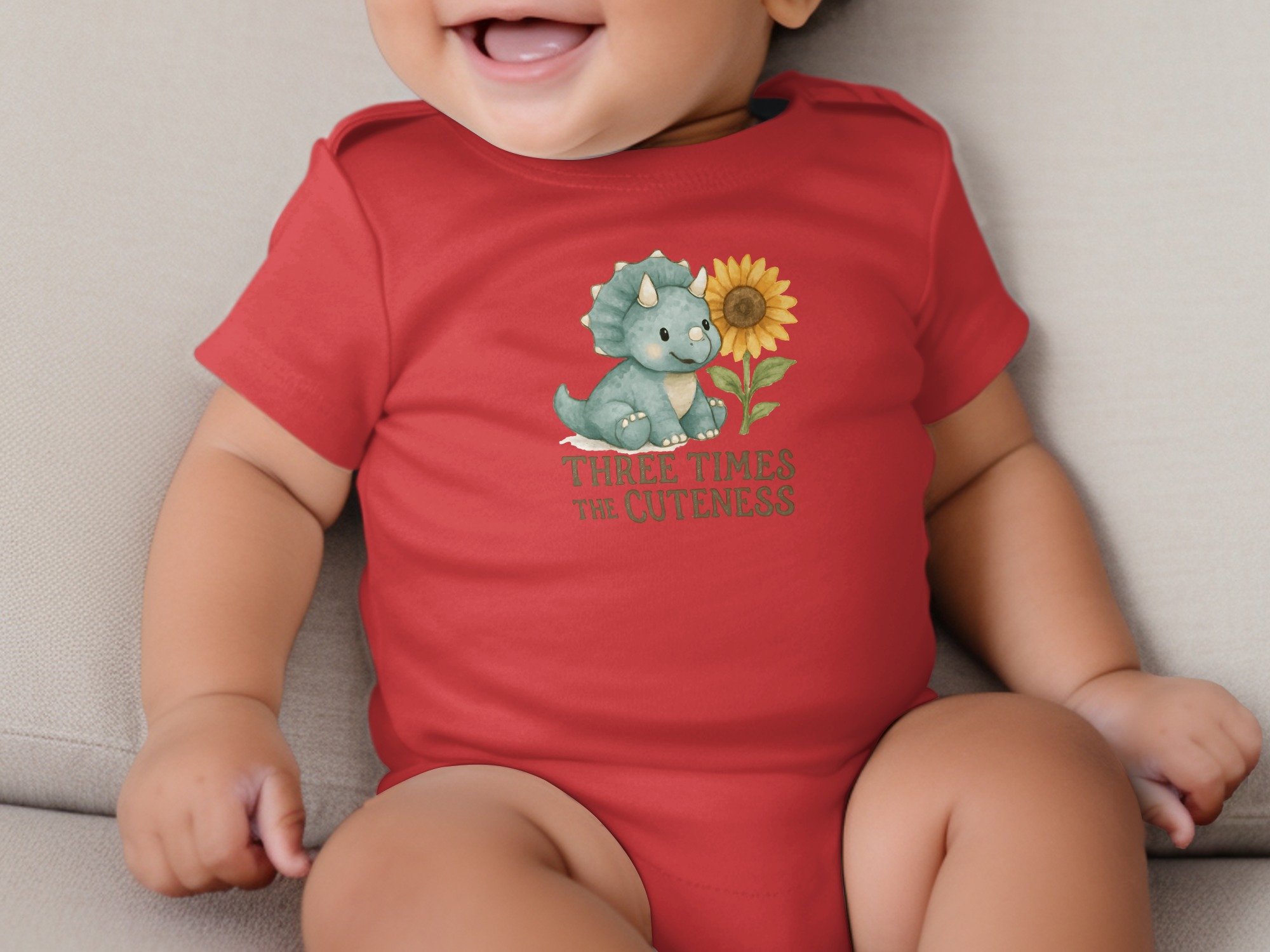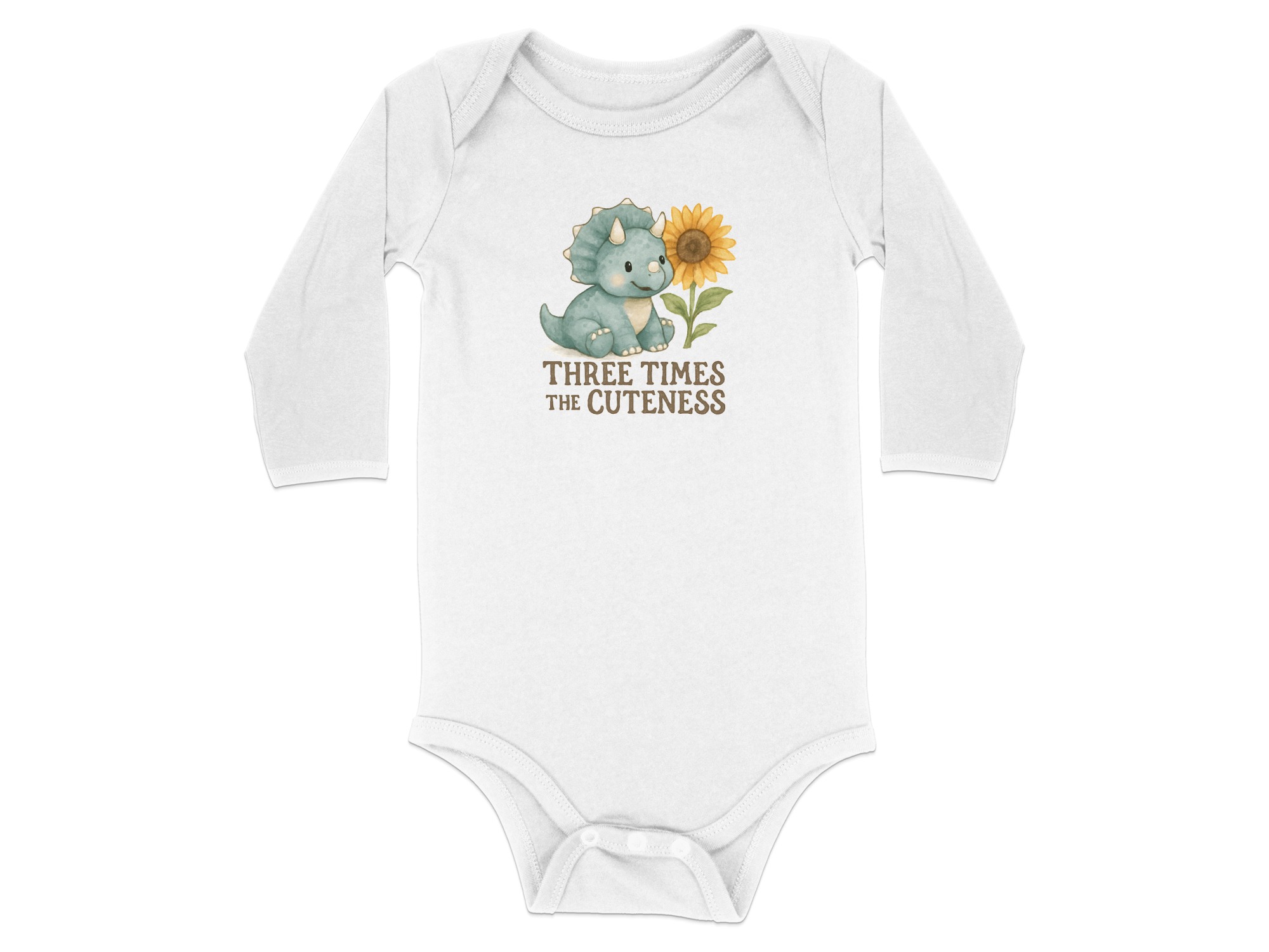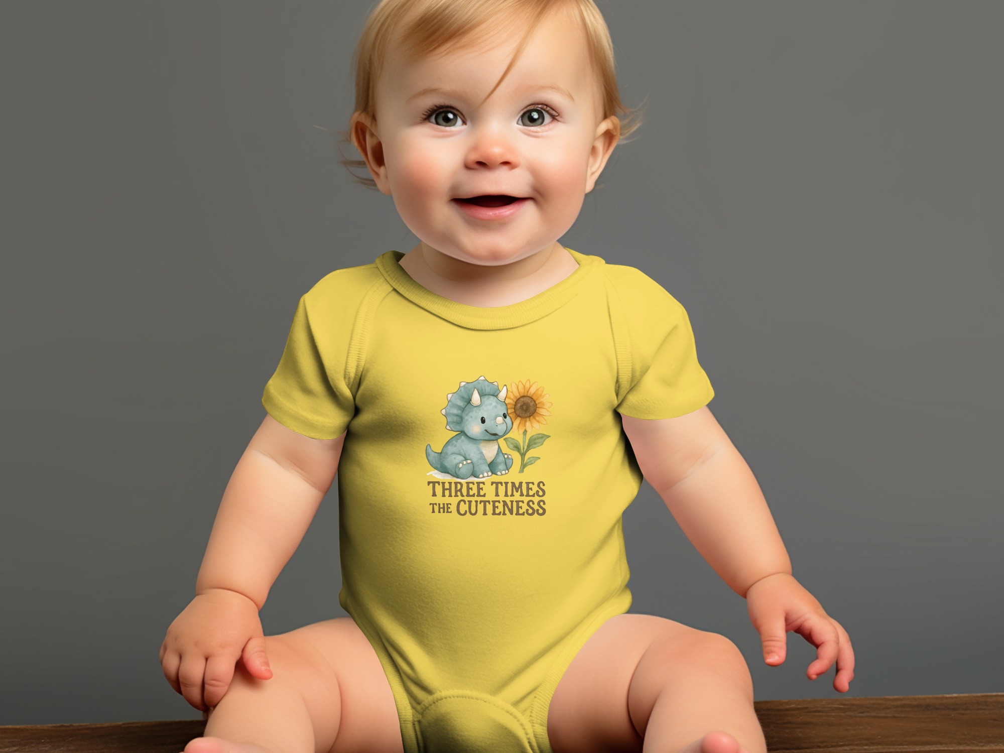 Add extra charm to your baby’s wardrobe with our super-soft bodysuit featuring an adorable dinosaur and sunflower design. Explore ultimate comfort and cuteness!