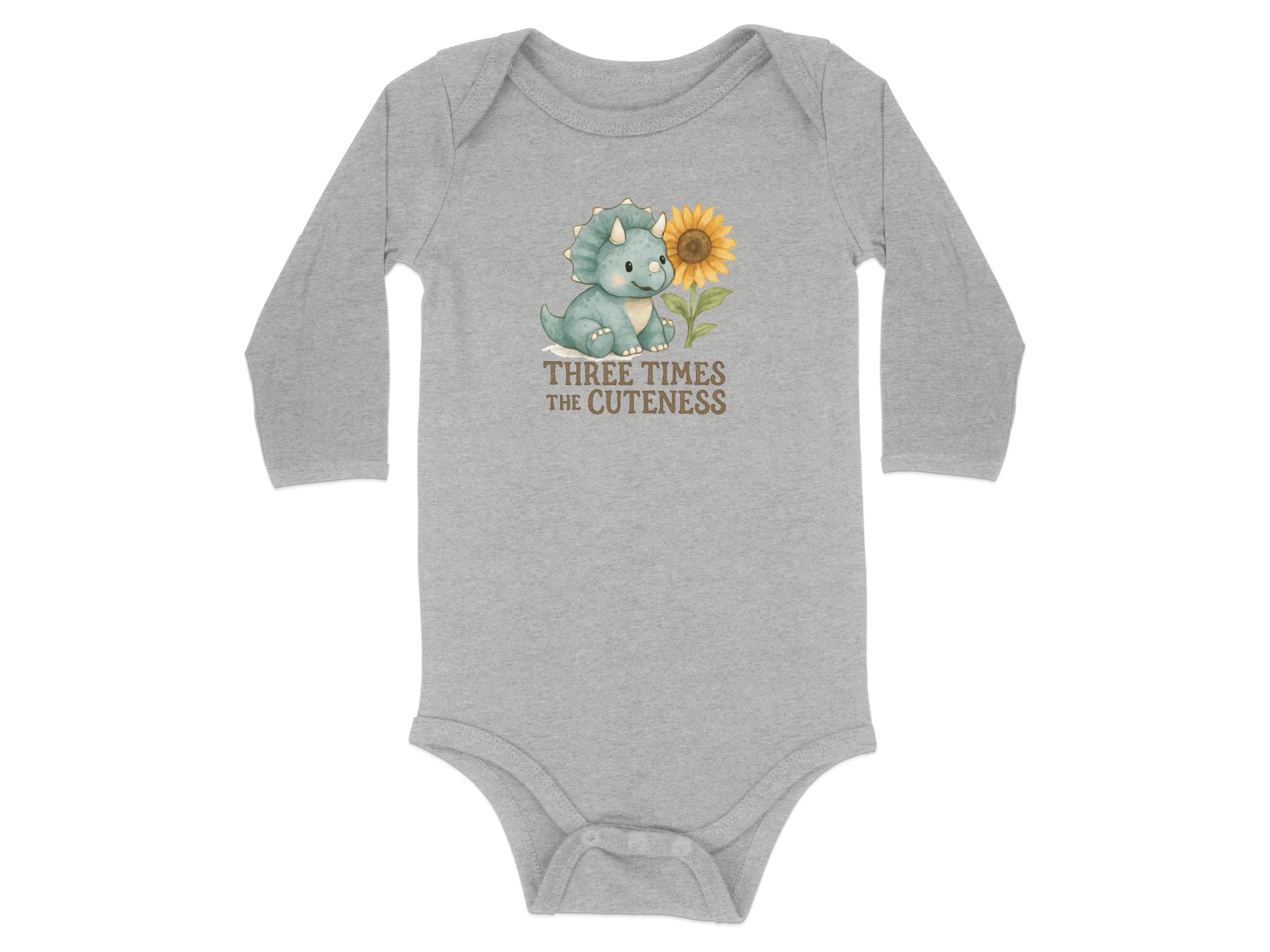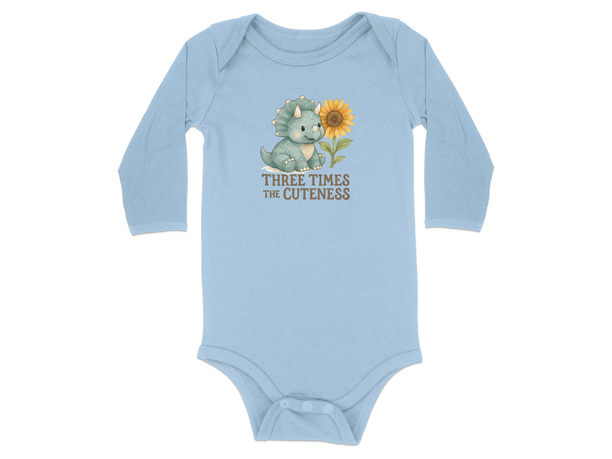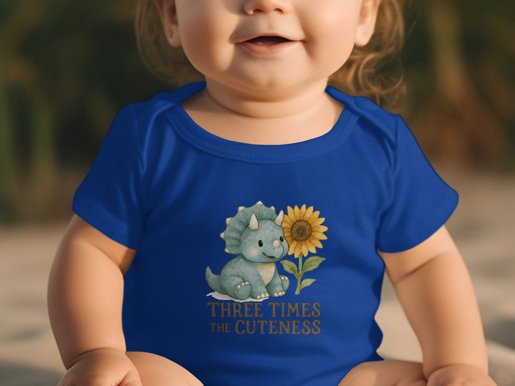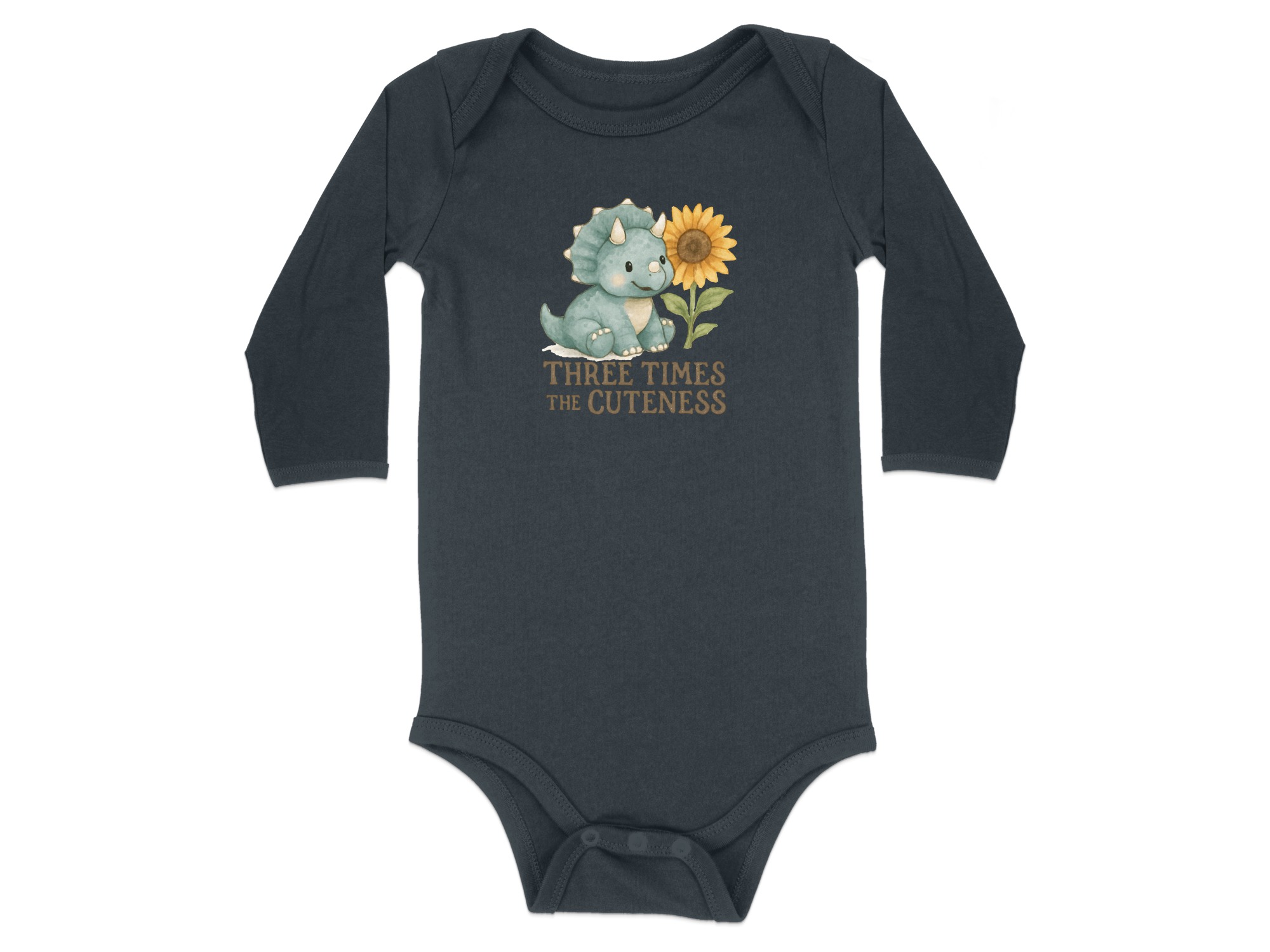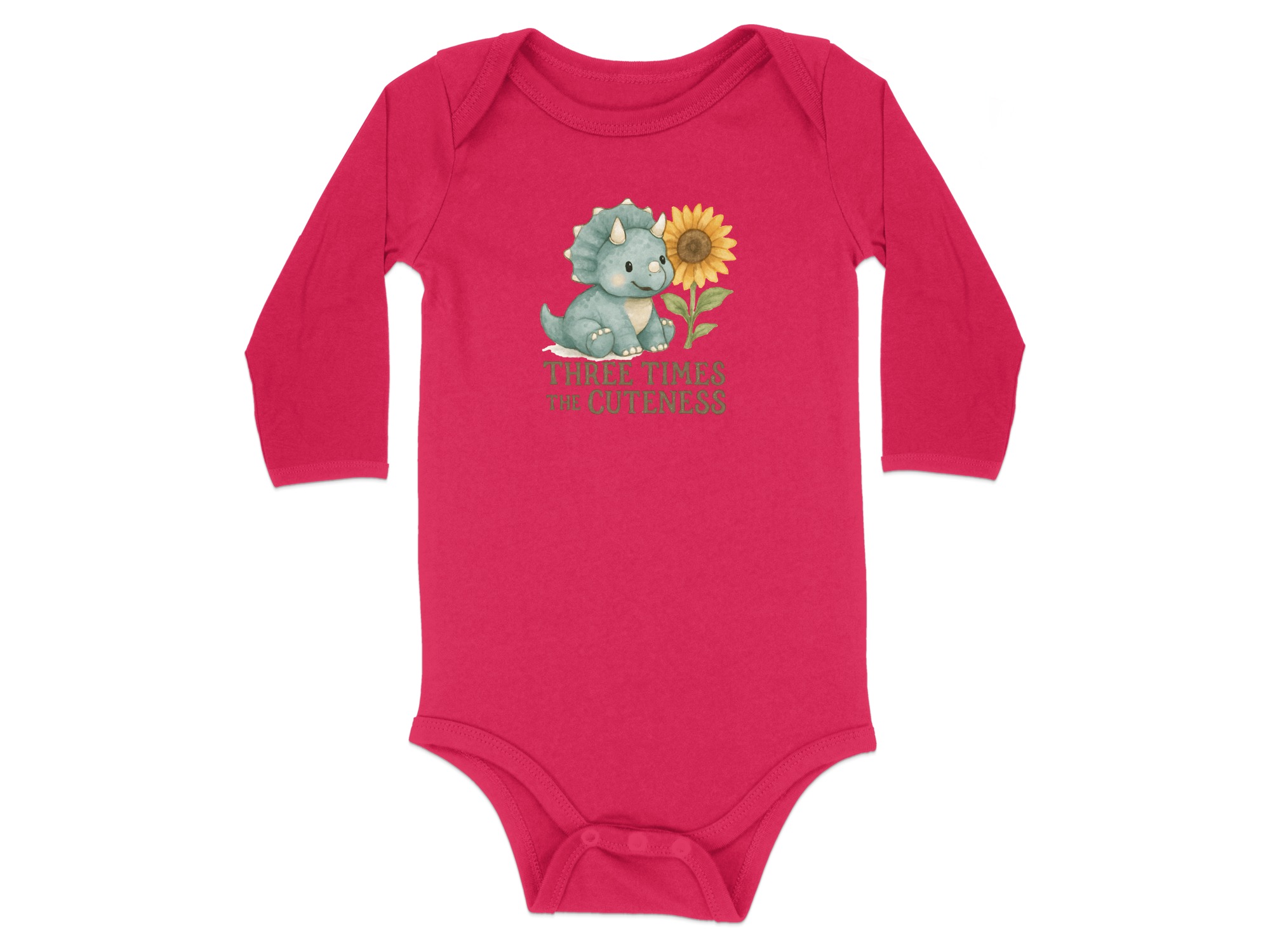 Add extra charm to your baby’s wardrobe with our super-soft bodysuit featuring an adorable dinosaur and sunflower design. Explore ultimate comfort and cuteness!