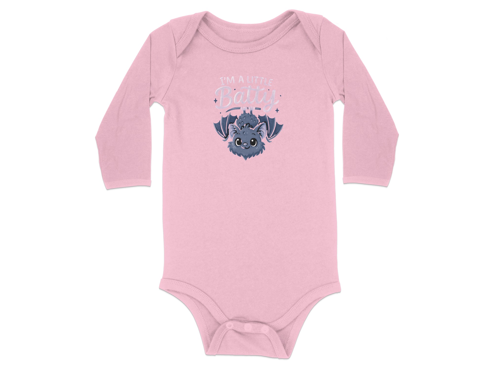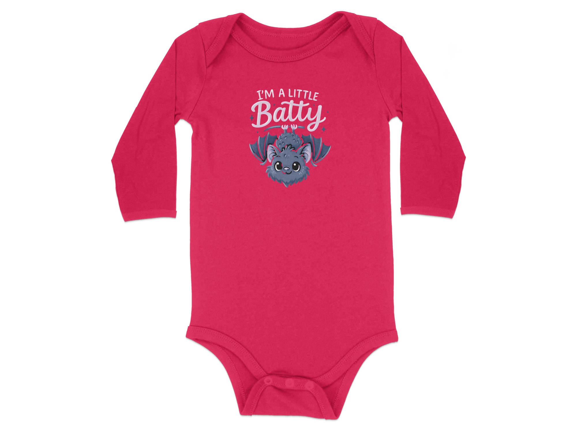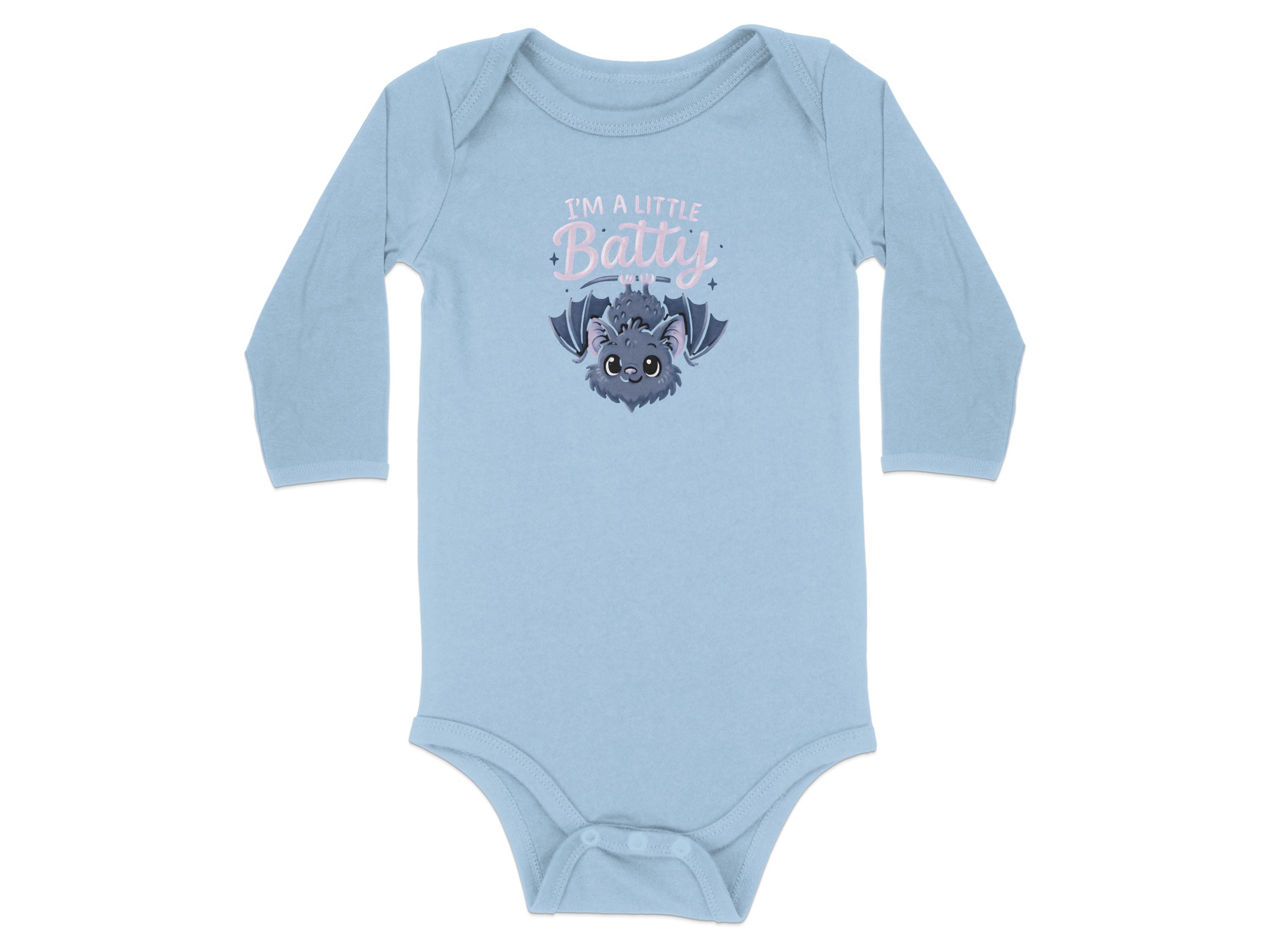 Cute I’m A Little Batty Graphic – Cute Halloween Cartoon Long Sleeve Baby Bodysuit. Soft, comfy, and kid-proof; perfect for pumpkin patches, parties, and trick-or-treat. Baby Bodysuit Sizes NB to 24M..