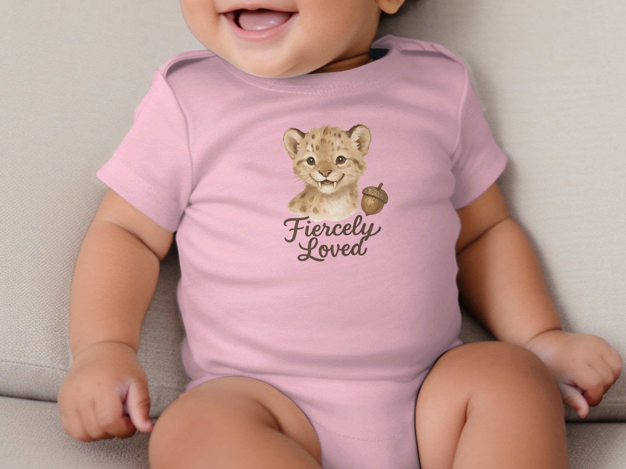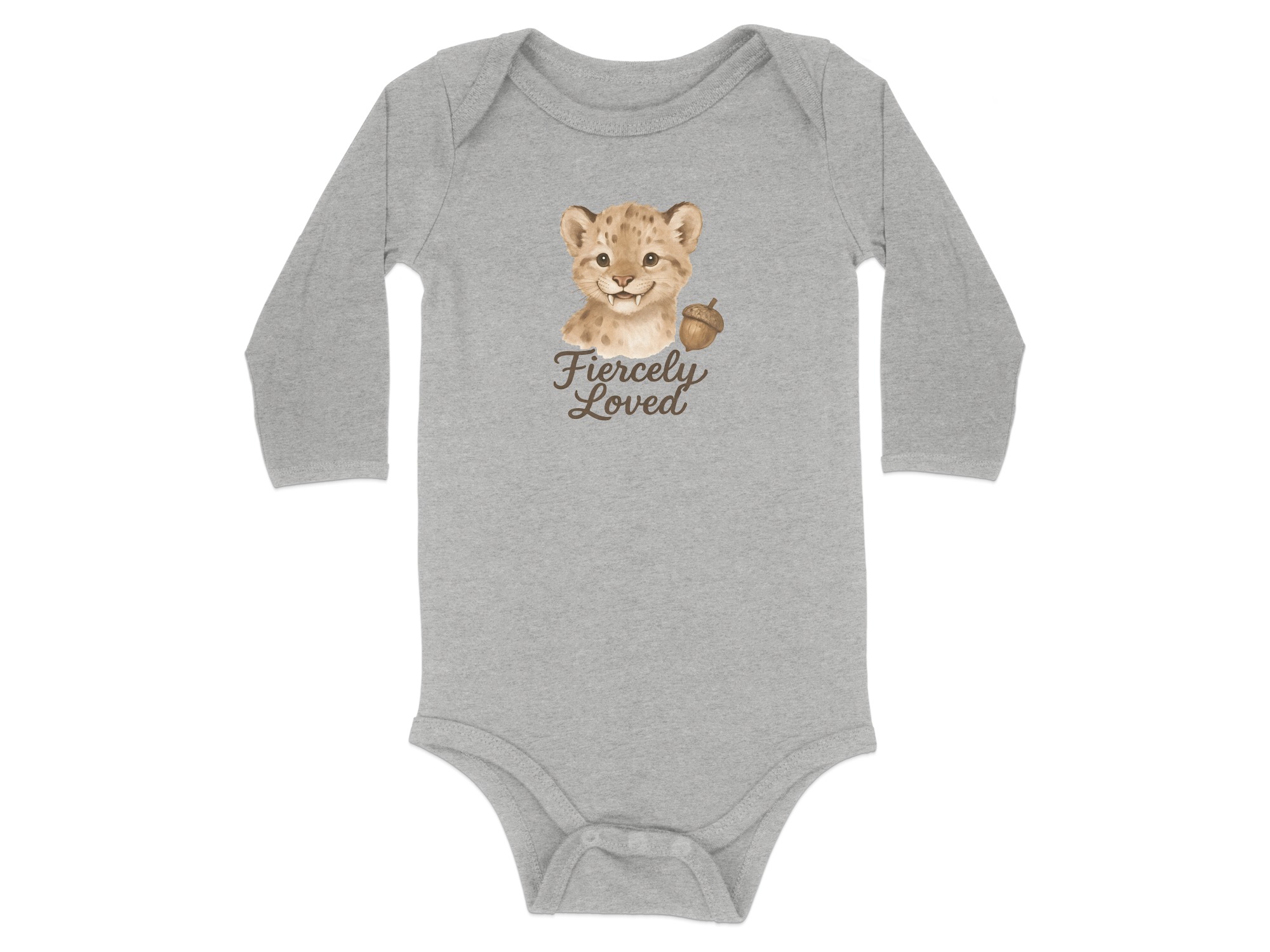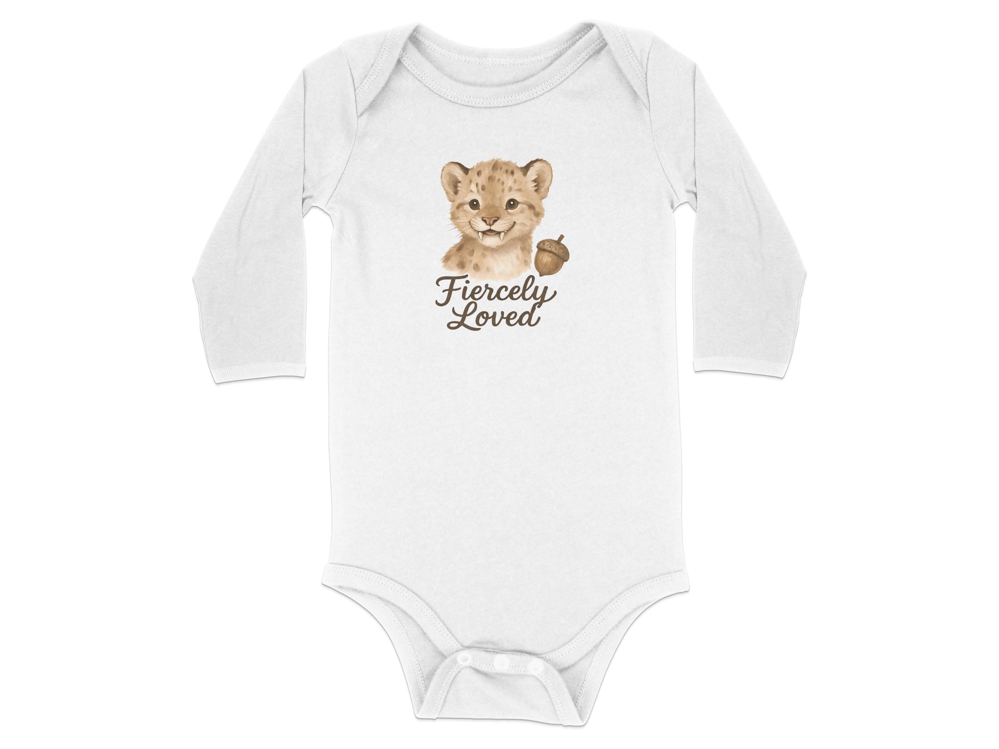 Fiercely Loved bodysuits for your little one! Featuring a cute baby lion cub and a sweet message. Perfect for infant clothing and newborn gifts. Get yours today!
