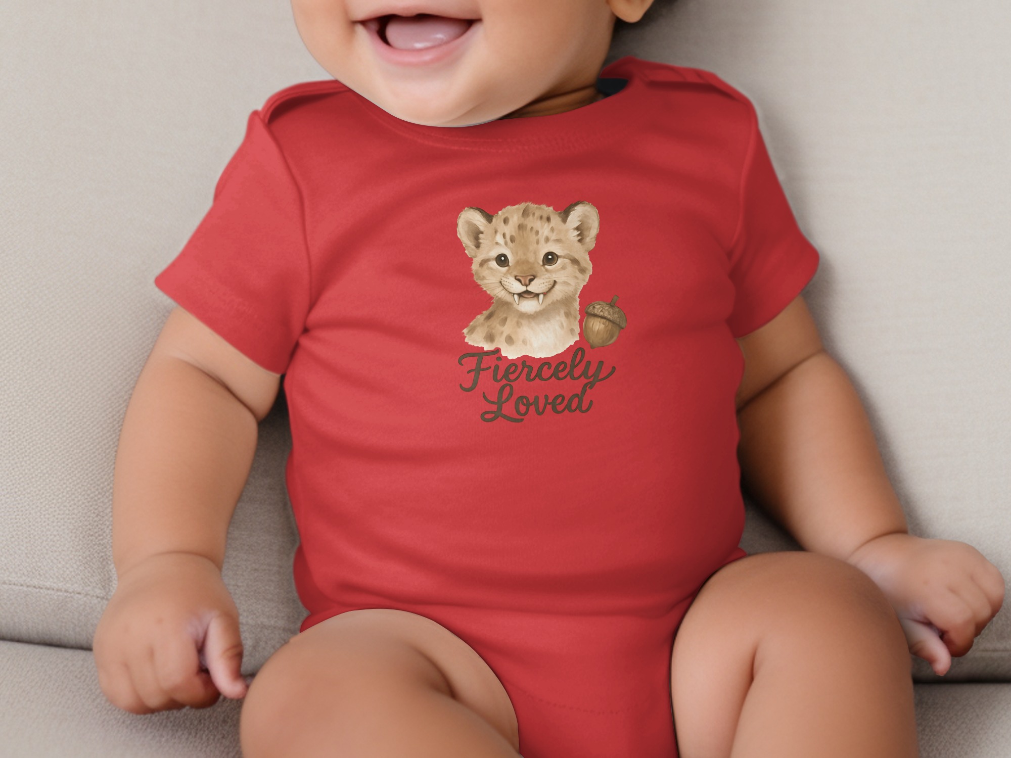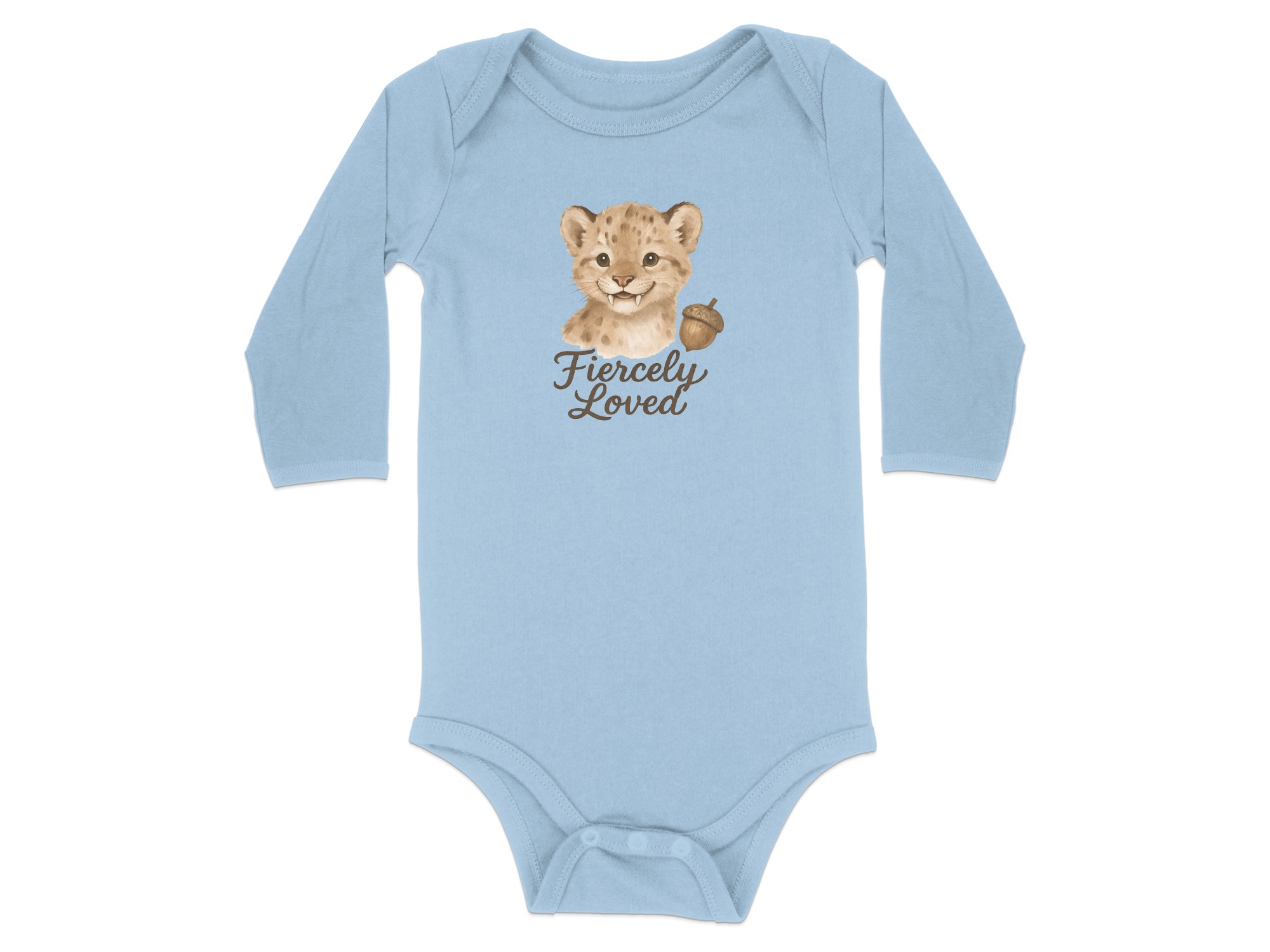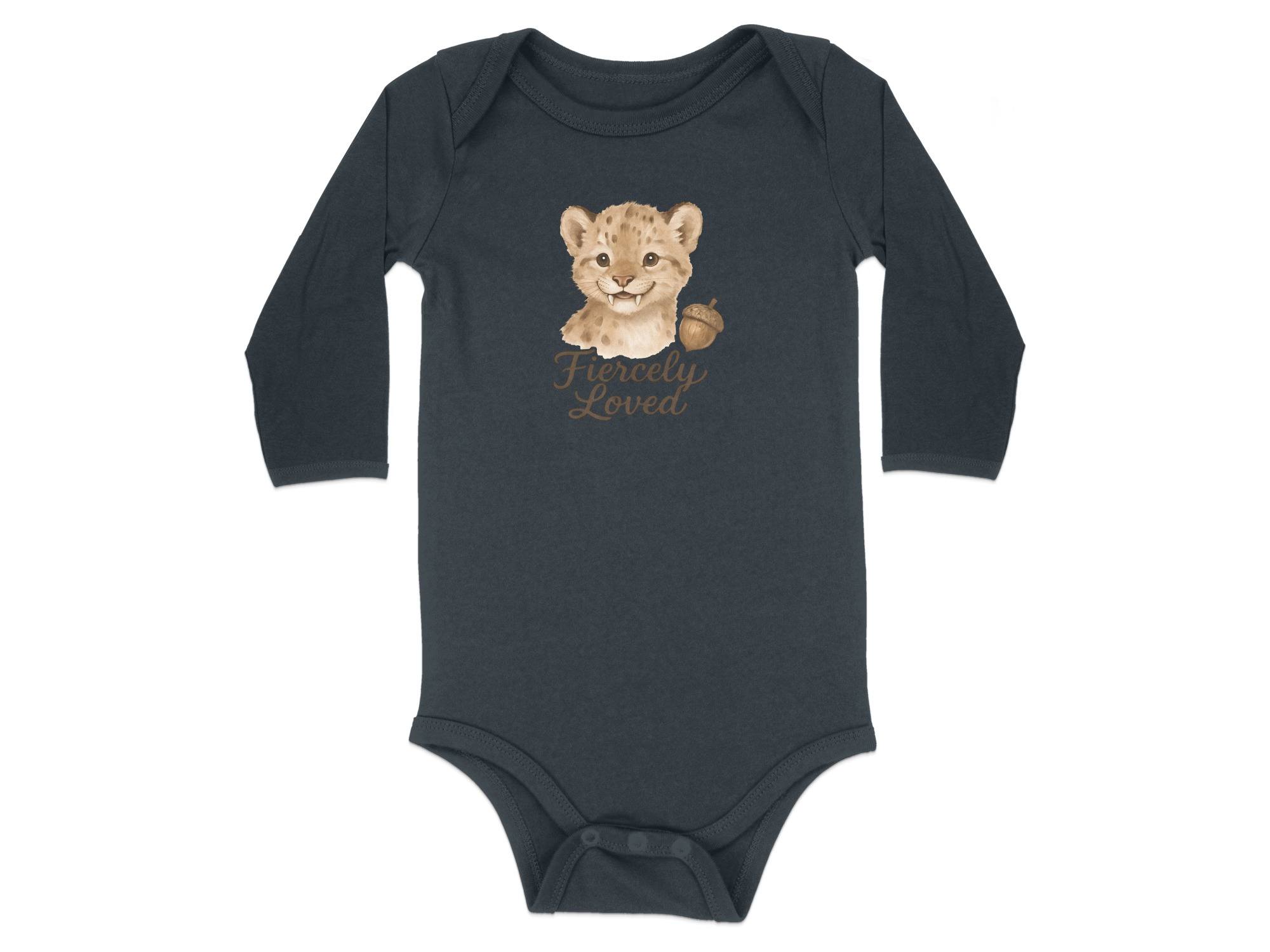 Fiercely Loved bodysuits for your little one! Featuring a cute baby lion cub and a sweet message. Perfect for infant clothing and newborn gifts. Get yours today!