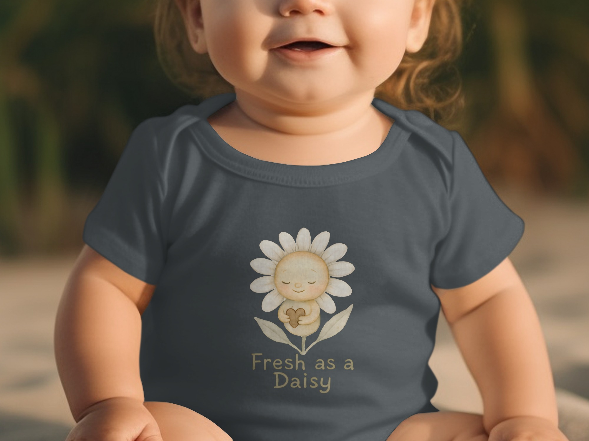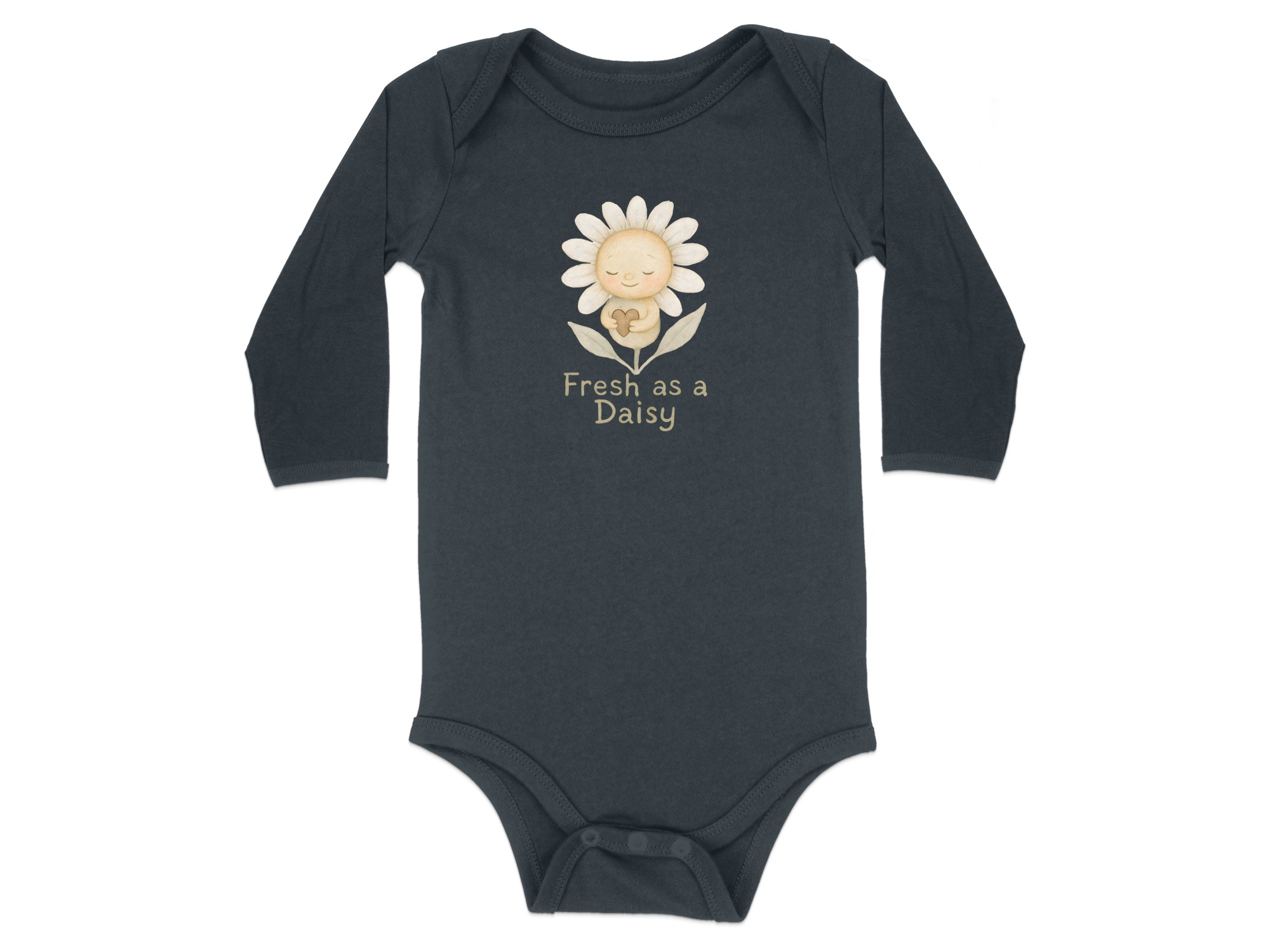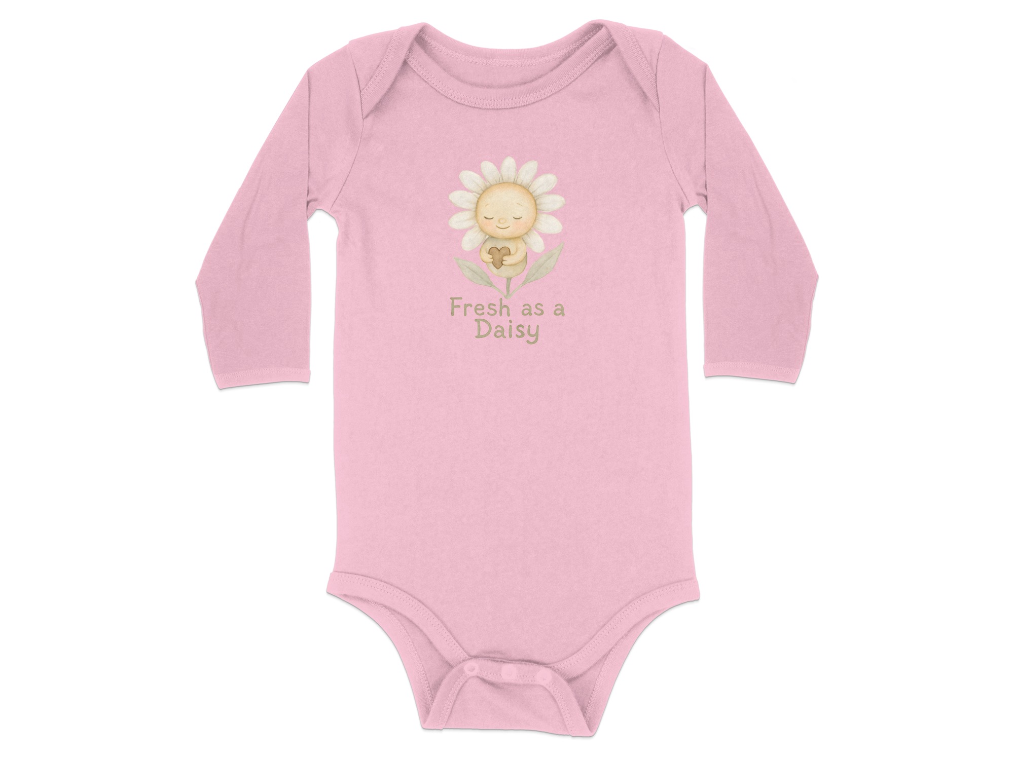 Adorable baby bodysuit featuring a cute watercolor daisy illustration holding a heart. Perfect outfit for your little one, spreading love and joy!