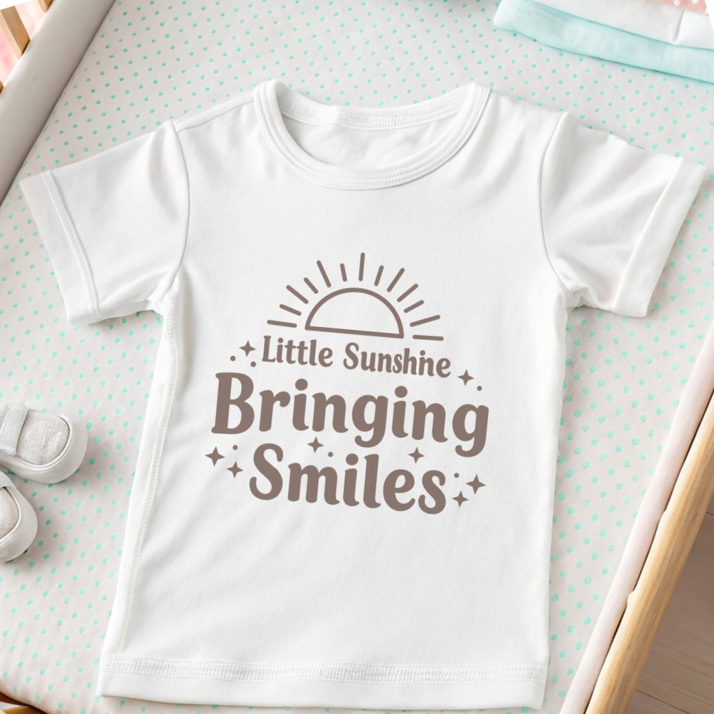 Little Sunshine Bringing Smiles Baby T-Shirt brings big personality to little outfits with a playful, kid-approved design.