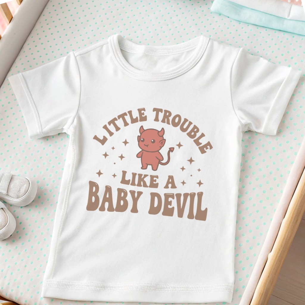 Little Trouble Like A brings big personality to little outfits with a playful, kid-approved design.