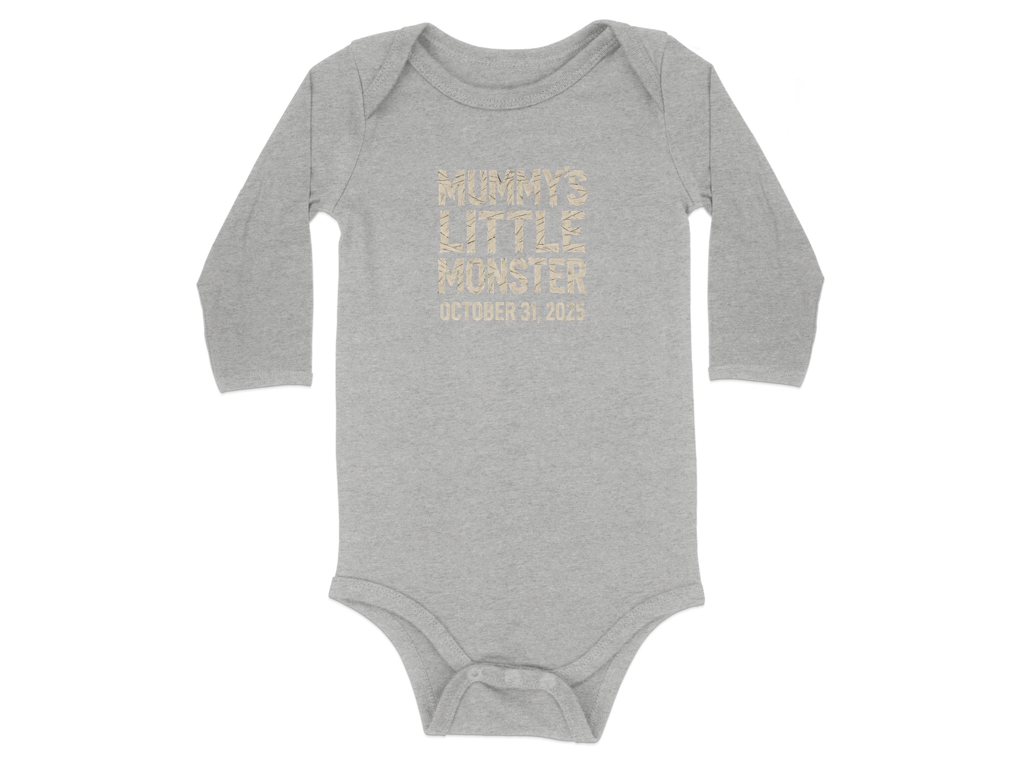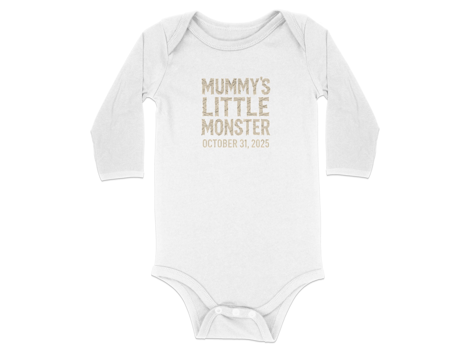 “Mummy’s Little Monster October 31st 2025” | Cute Halloween Cartoon Long Sleeve Baby Bodysuit | Baby Bodysuit Sizes NB to 24M