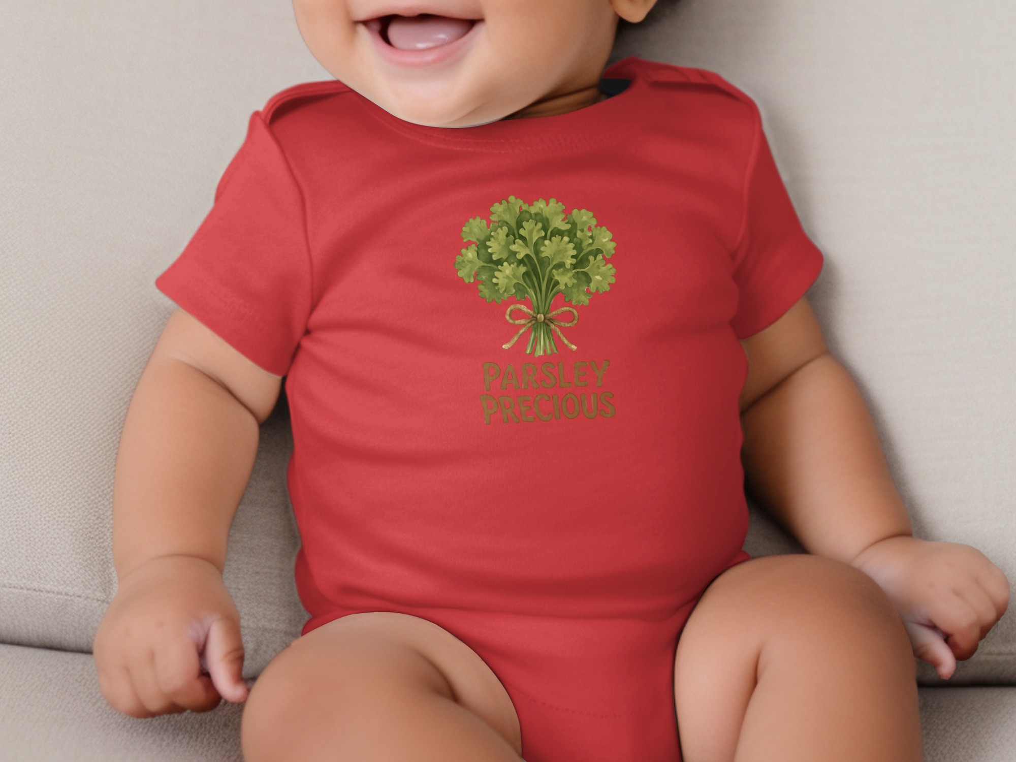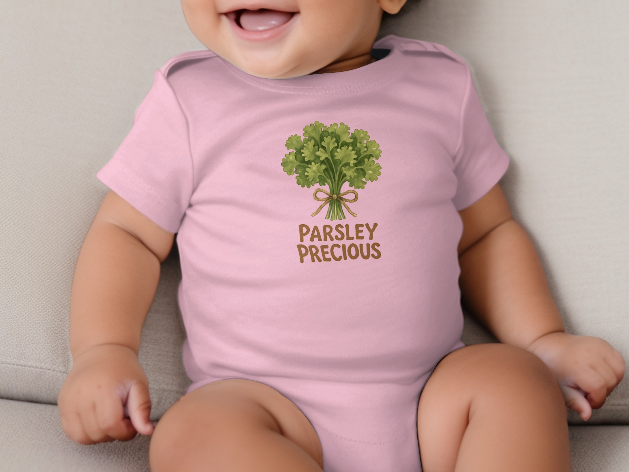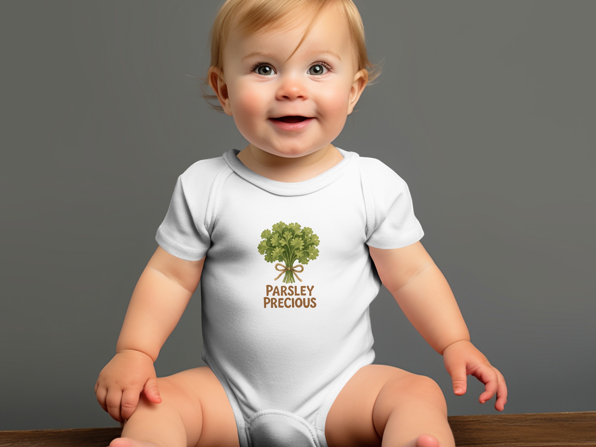 Delight your little one with a charming body suit featuring a precious parsley design. Perfect for adding a touch of garden-inspired sweetness to your baby’s wardrobe!