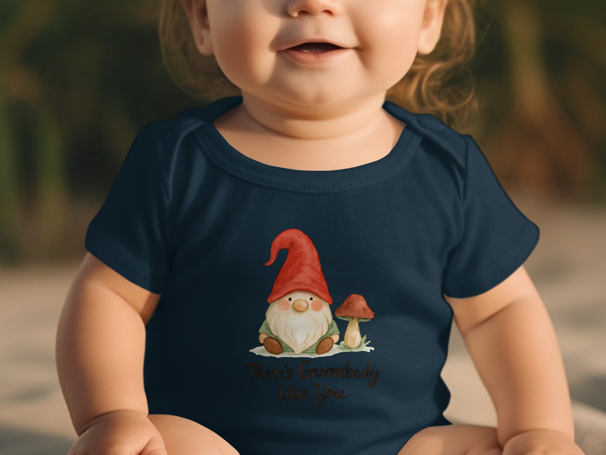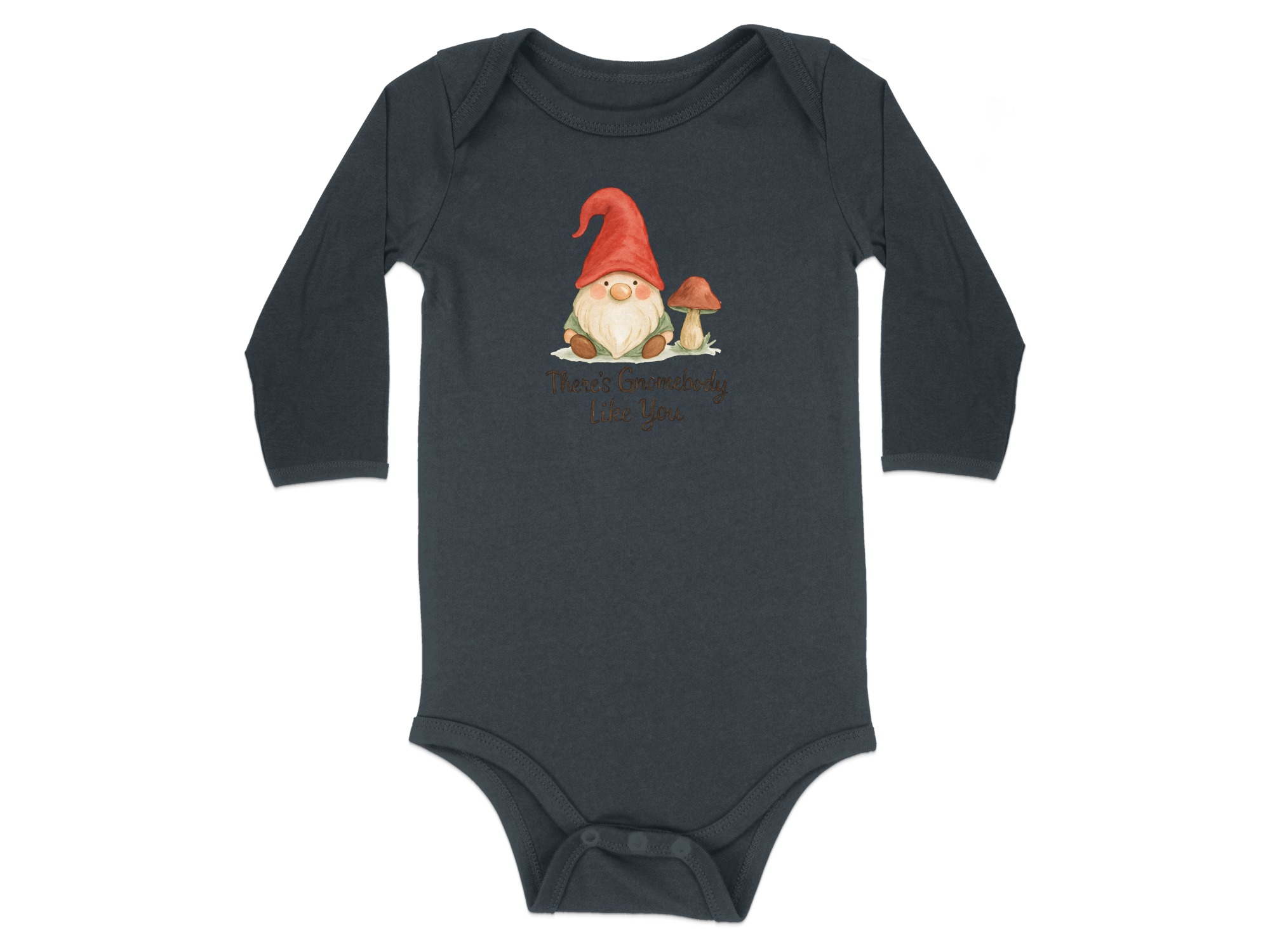 “There’s Gnombody Like You” cute gnome design bodysuit. Perfect for the special little one in your life! Adorable gnome with mushroom illustration.