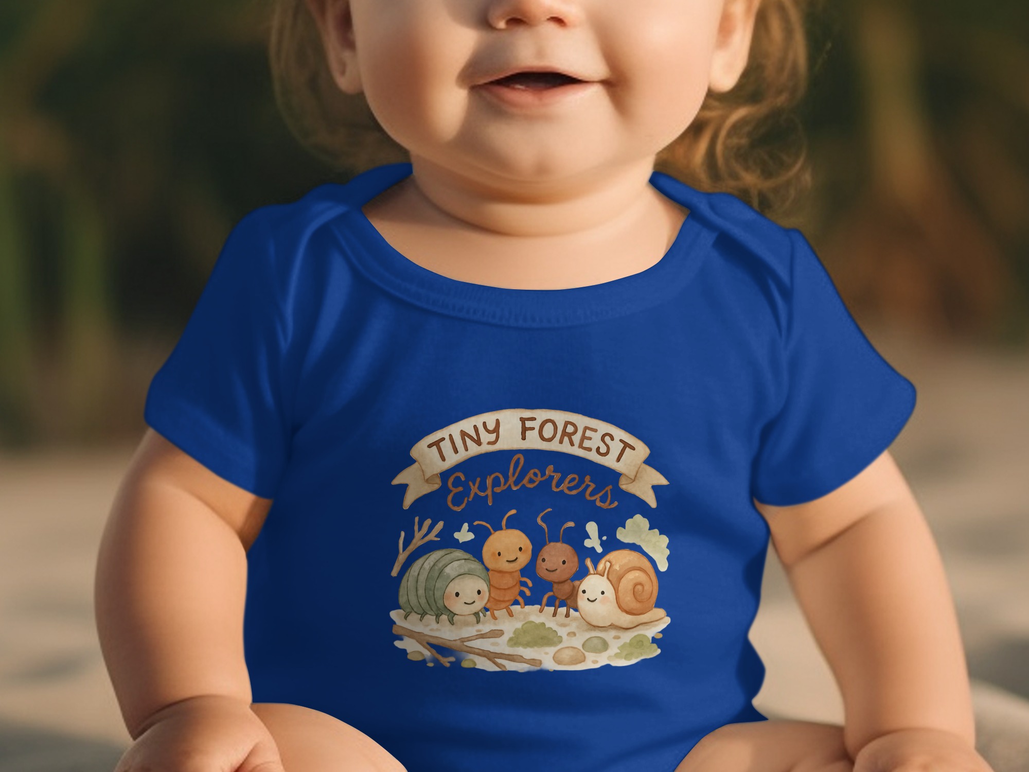Dress your little one in this adorable “Tiny Forest Explorers” bodysuit, available in both long and short sleeve styles from newborn to 24 months. This charming design features a group of cute bug characters including a woodlouse, an ant, a snail, and a generic bug friend. Perfect for baby clothes, a funny baby outfit, or a thoughtful infant gift.