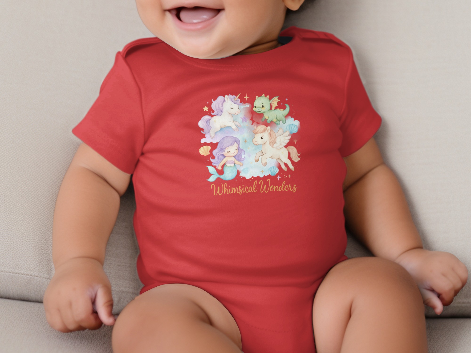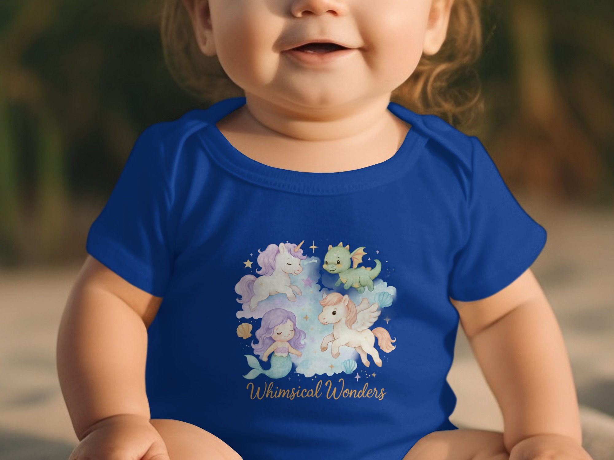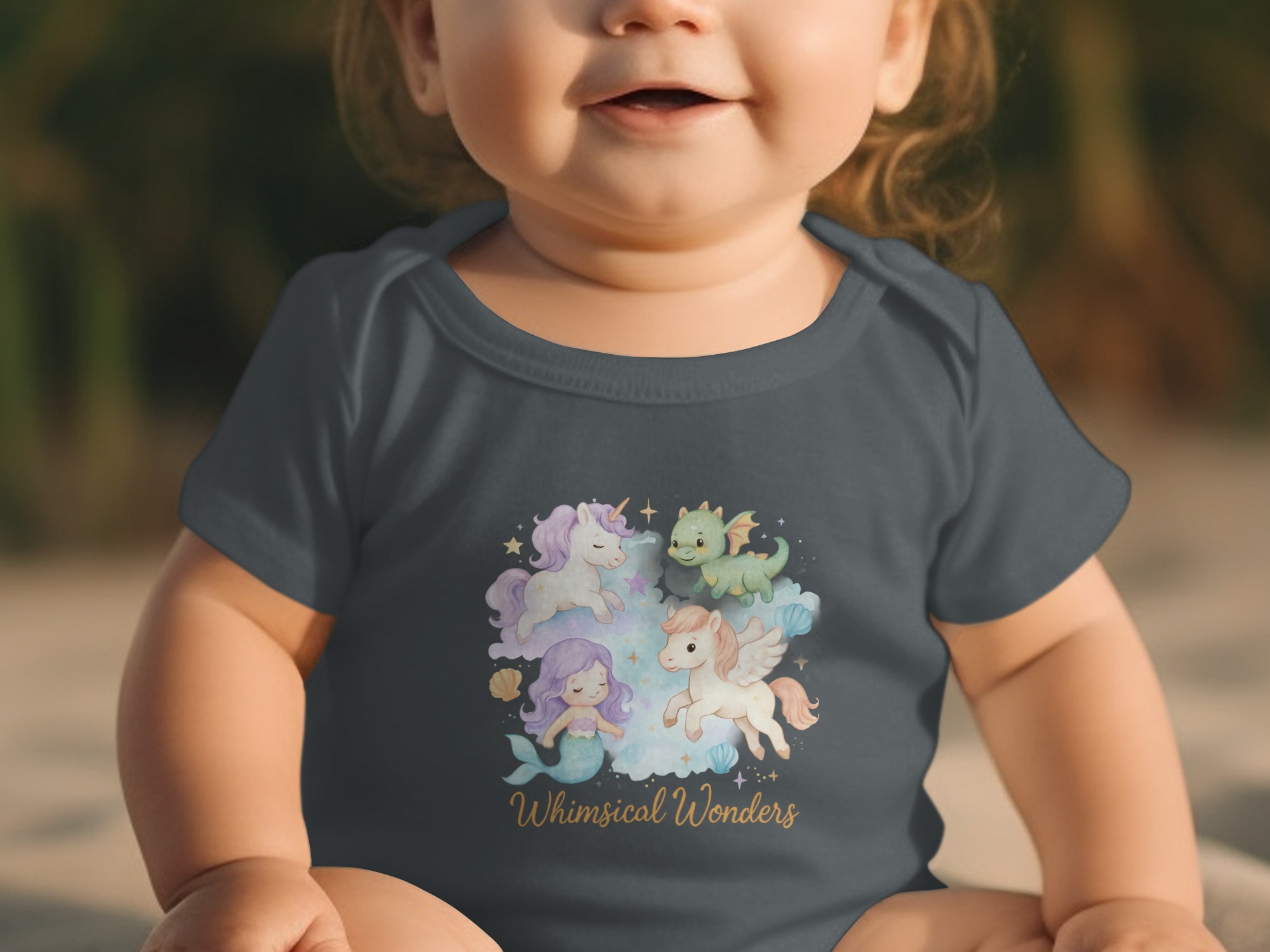 The “Whimsical Wonders” design features a delightful gathering of fantasy creatures on a cloud.