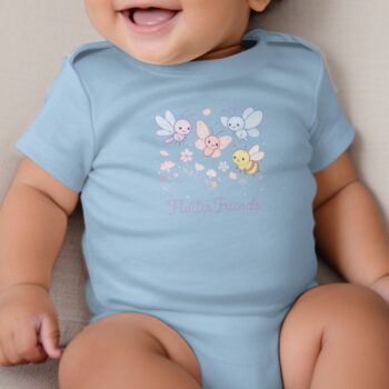Wings of Wonder design for Bodysuits, available in long and short sleeves, sizes Newborn to 24 Months. Features whimsical creatures, making it perfect for a magical baby wardrobe.