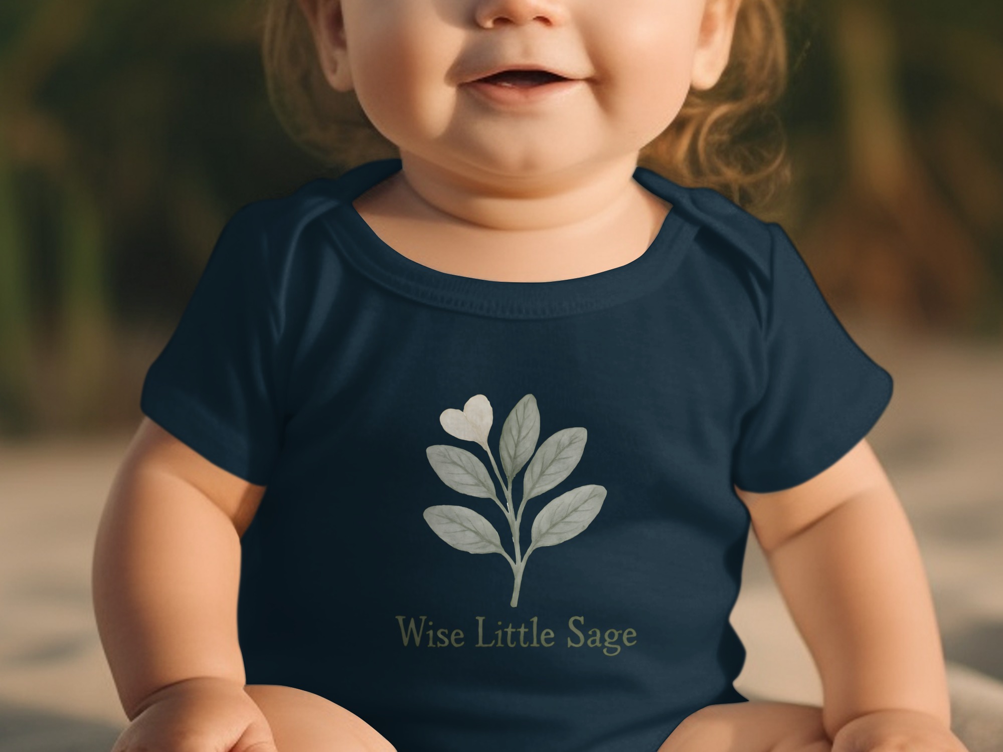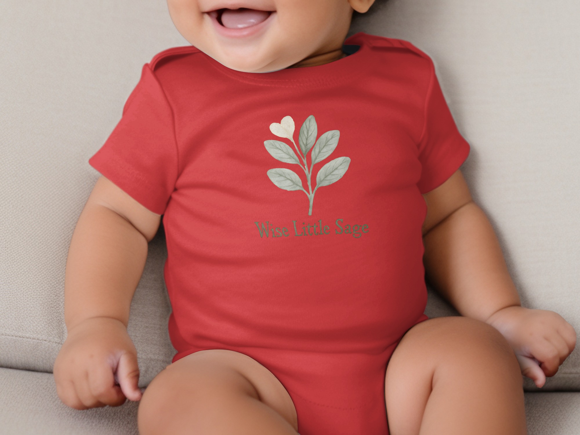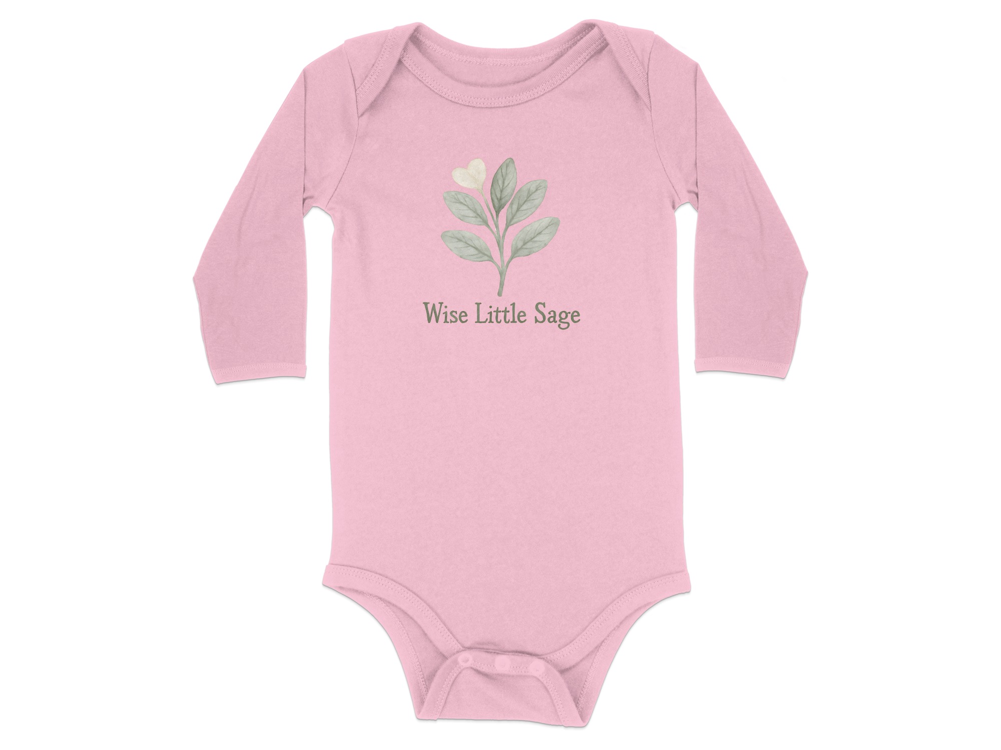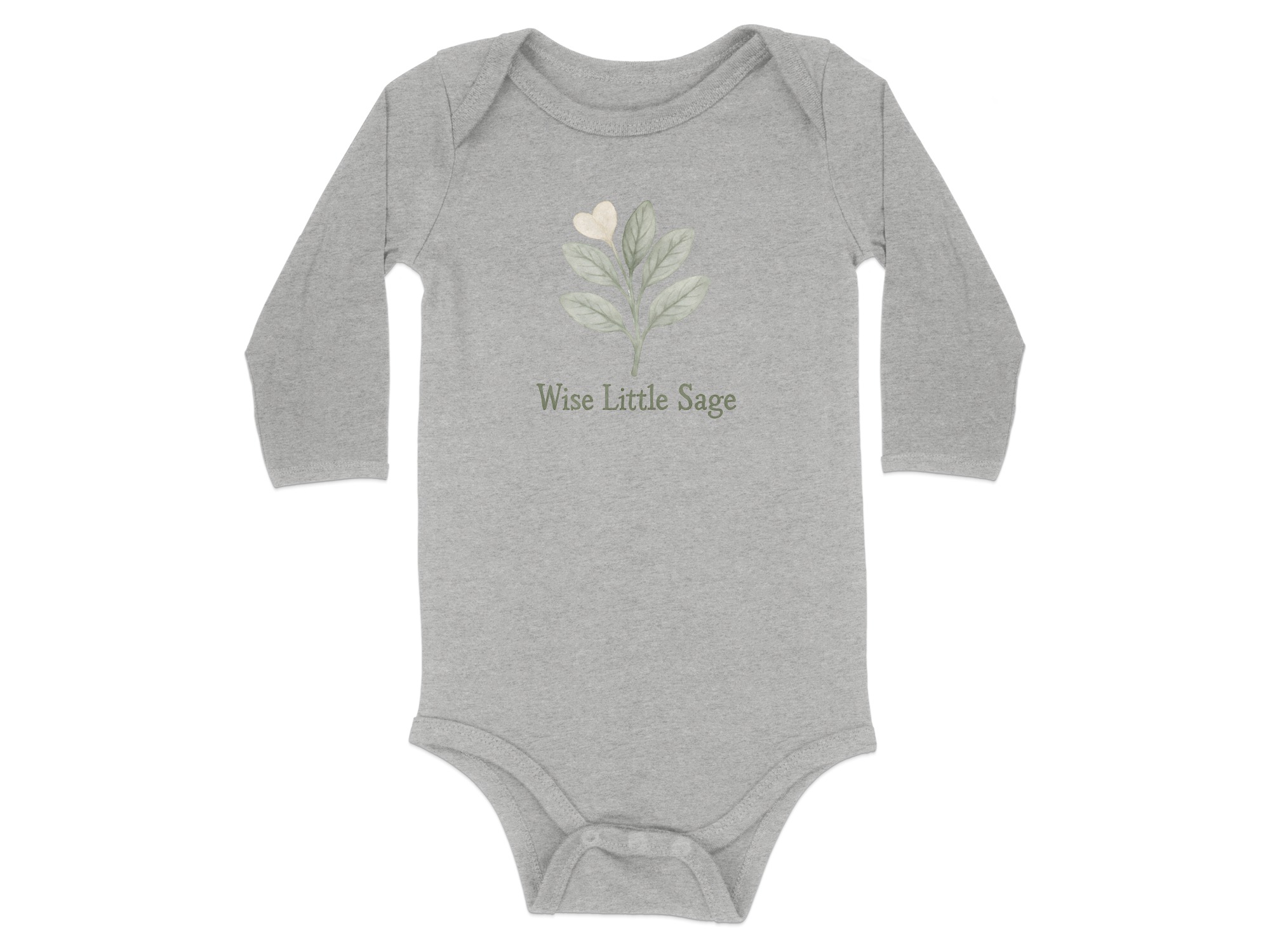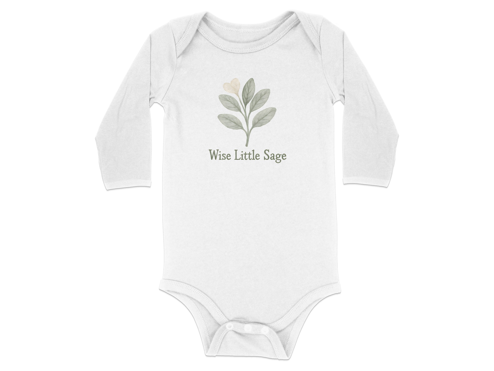 Our “Wise Little Sage” bodysuit features a cute watercolor sage leaf design. The perfect baby shower gift for earthy parents who love nature!