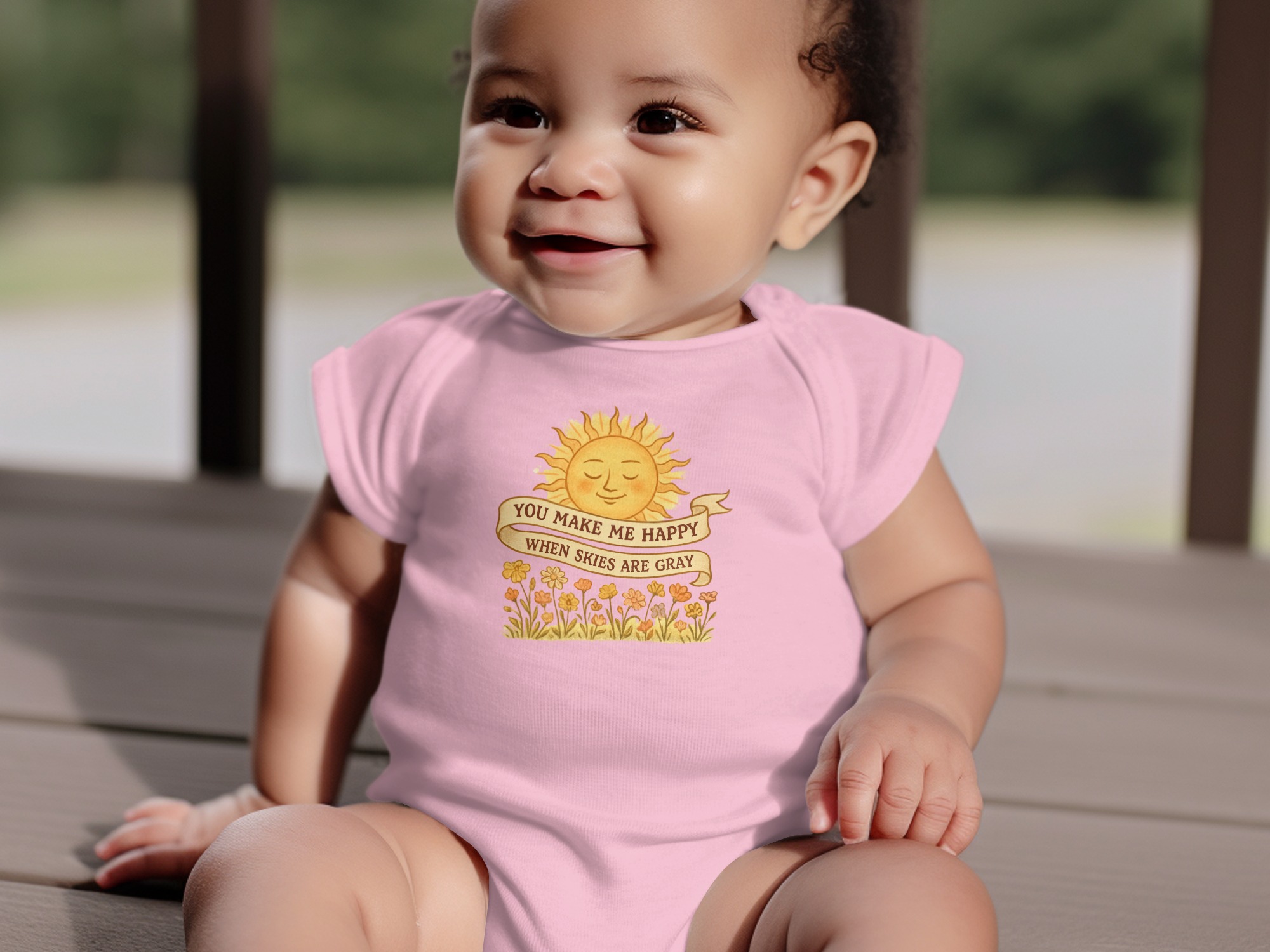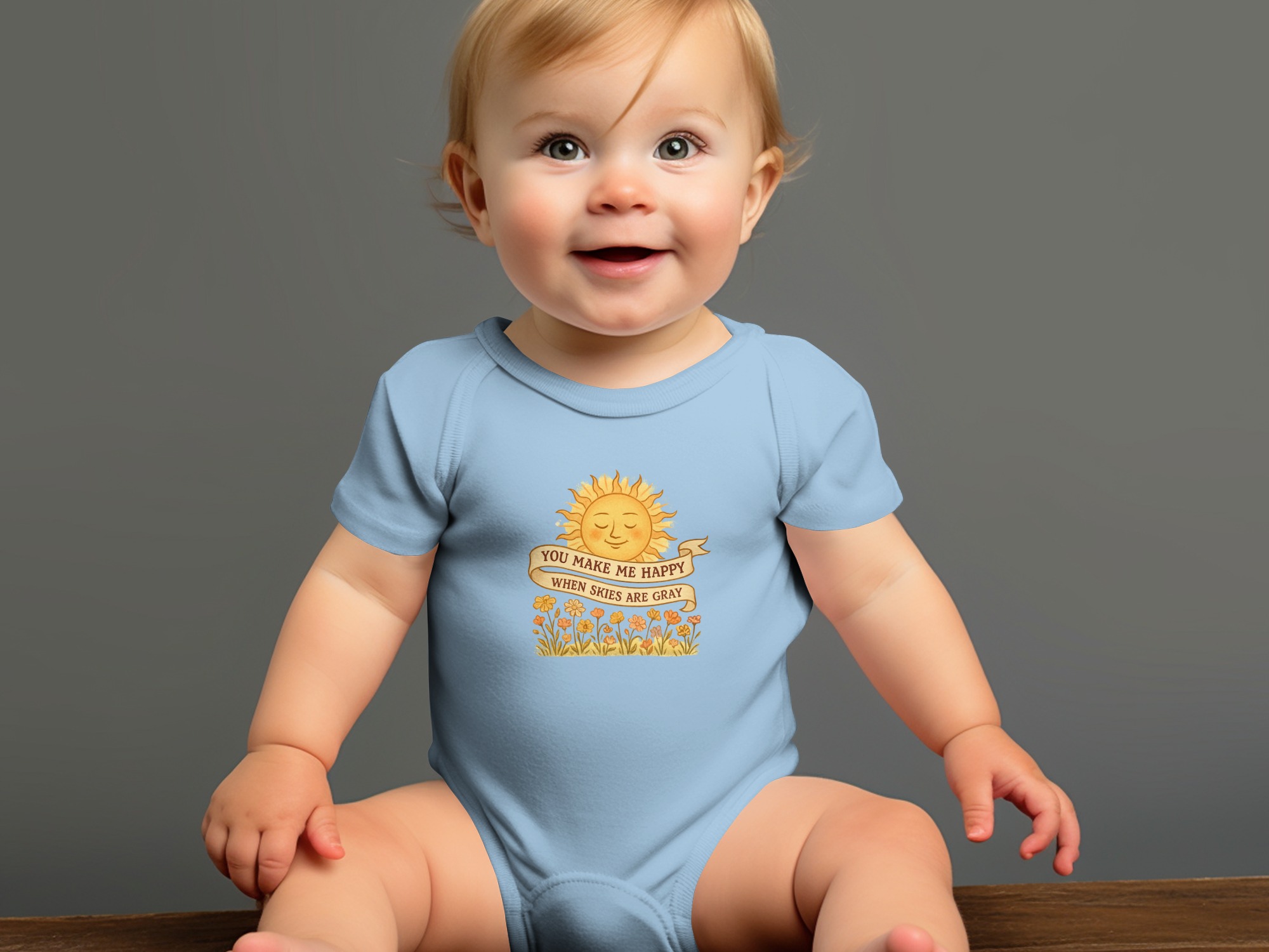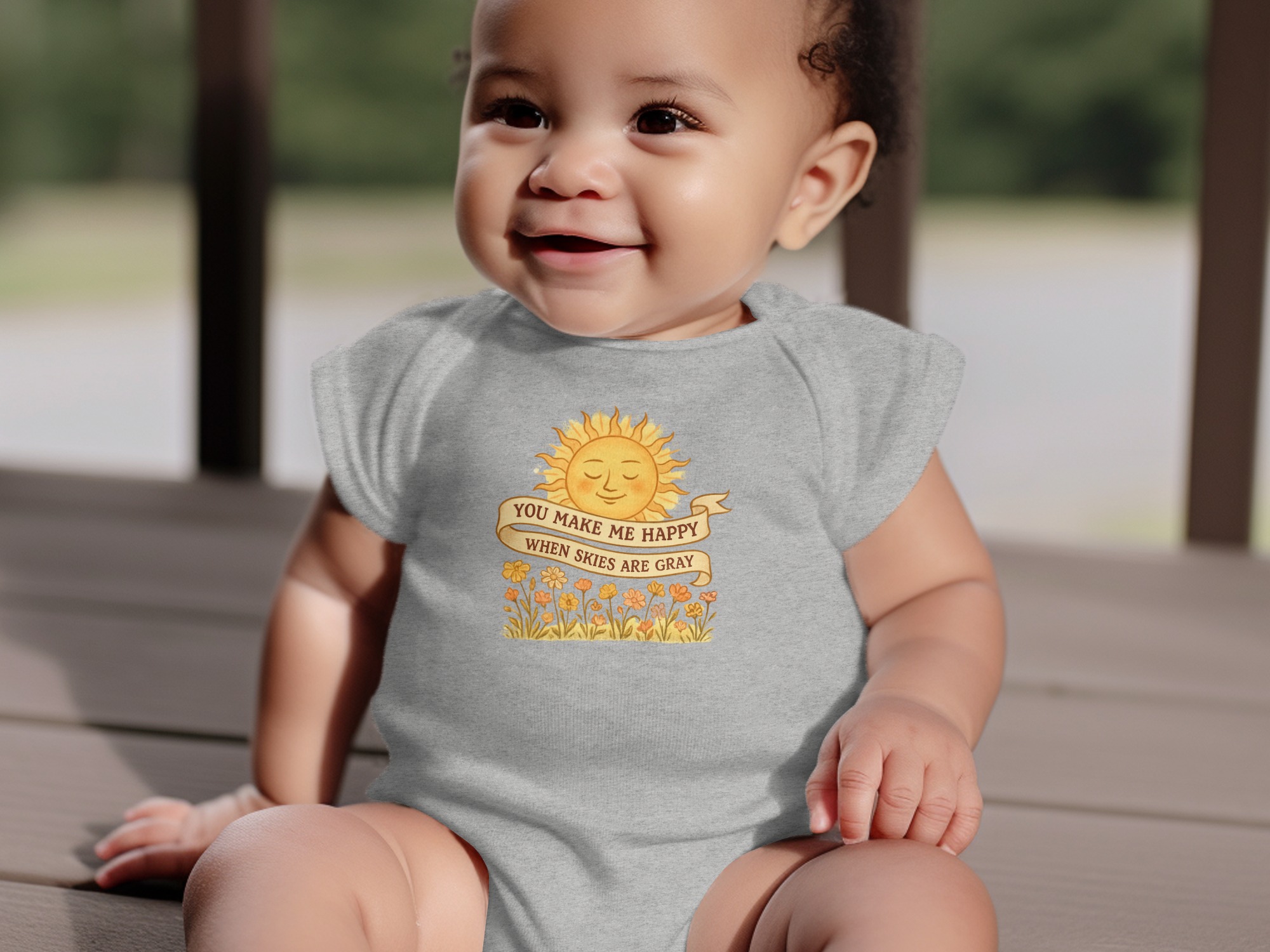 You Make Me Happy When Skies are Gray brings big personality to little outfits with a playful, kid-approved design.