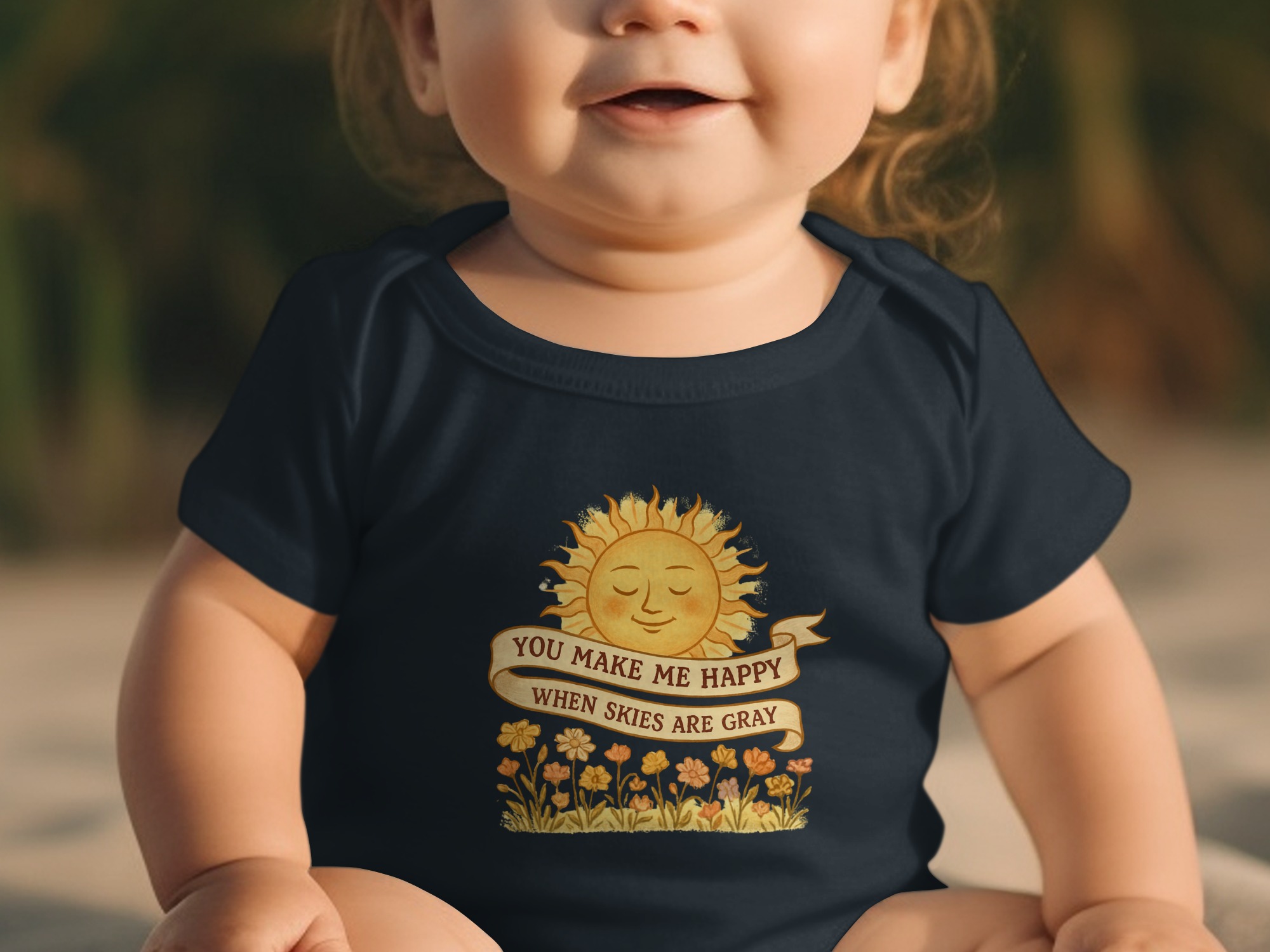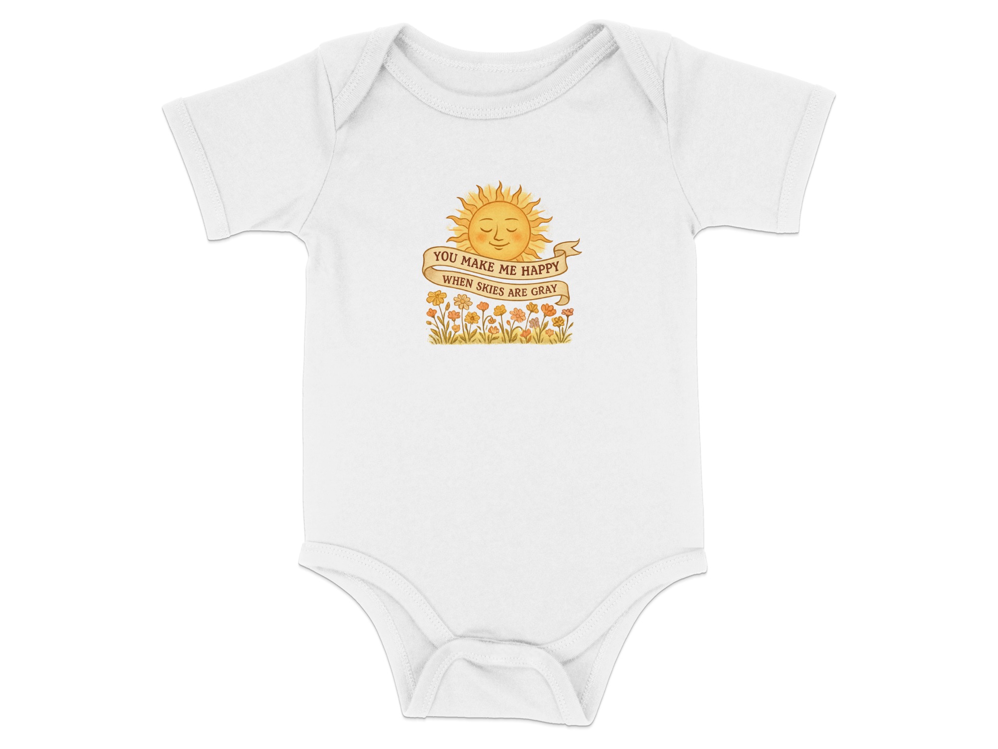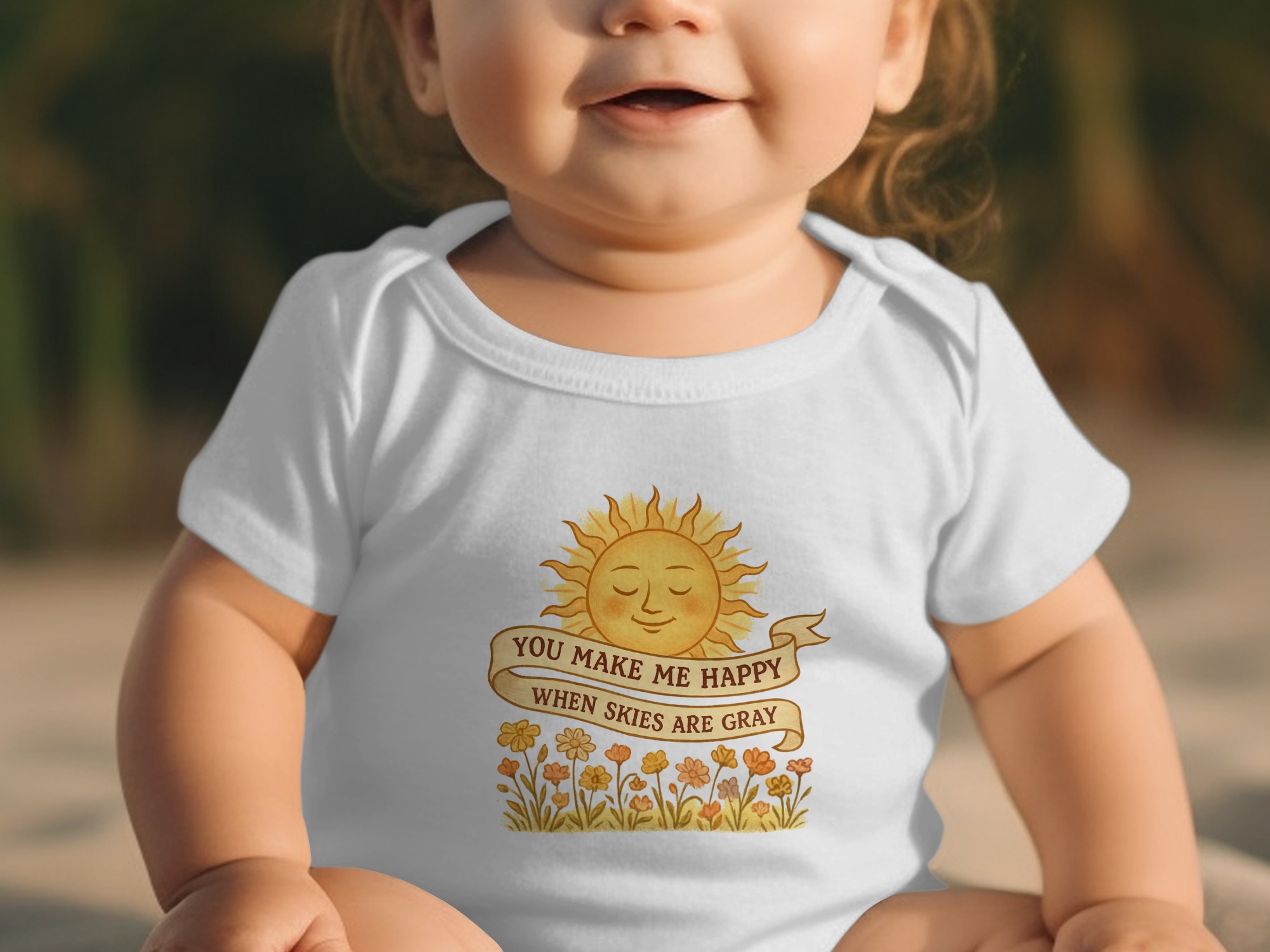 You Make Me Happy When Skies are Gray brings big personality to little outfits with a playful, kid-approved design.