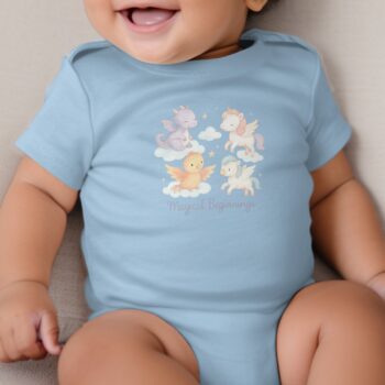 Magical Beginnings Bodysuit NB to 24M, Dragon Unicorn Bird Baby Bodysuit, Long Short Sleeve Bodysuit, Cute Infant Clothes, Fantasy Animals