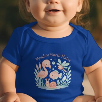 Meadow Marsh Mates Bodysuit, Flamingo Fish Snail Dragonfly, Long and Short Sleeve Bodysuits NB-24M, Cute Animals, Baby Toddler Clothes