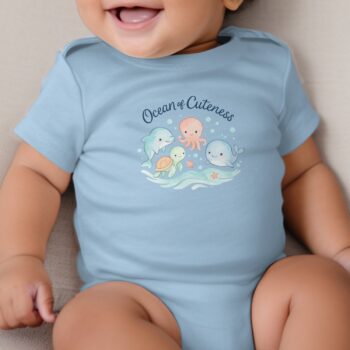 Ocean Cute Bodysuit NB to 24M, Baby Dolphin Whale Turtle Octopus Bodysuit, Ocean of Cuteness Short Sleeve, Long Sleeve Baby Bodysuit