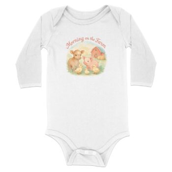 Morning on the Farm Bodysuit, Cow Pig Duckling Design, Newborn to 24M, Short Sleeve and Long Sleeve, Cute Farm Animals Apparel