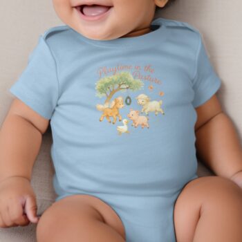 Playtime in the Pasture Bodysuits Long and Short Sleeve NB to 24M, Farm Animals Baby Clothes, Pony Sheep Pig Duck Bodysuit, Infant Apparel