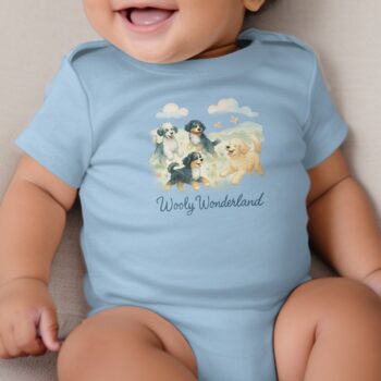 Wooly Wonderland Bodysuit, Adorable Puppy Dogs, Newborn to 24M Long and Short Sleeve, Playful Puppy Design, Cute Dog Illustration